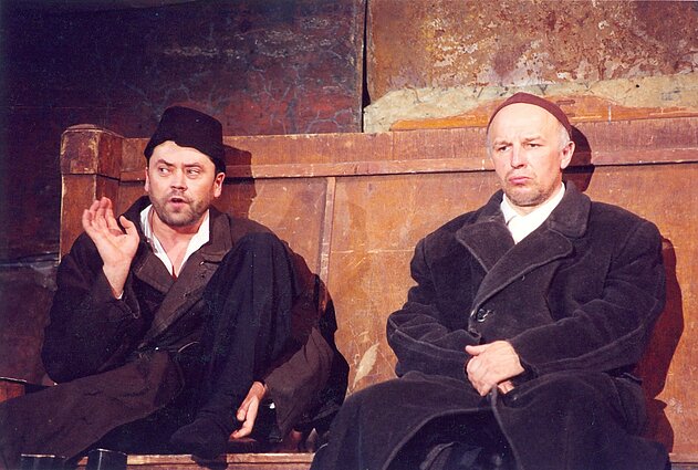 Vytautas Šapranauskas-Chloinė Genechas, Sigitas Račkys-Efraimas ben Jokūbas Dudakas VMT spektaklyje „Nusišypsok mums, Viešpatie“ / D. Matvejevo / VMT archyvo nuotr.