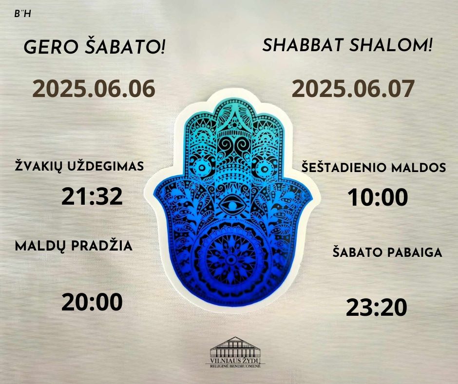 Shabbat Shalom! 2025-02-28 Lietuvos žydų (litvakų) bendruomenė visiems linki ramaus, taikaus Šabo. ← Mūsų darželis laukia būsimų lyderių! REGISTRACIJOS LAIKAS RIBOTAS Nataljos Cheifec paskaita „Žydų moteris“ →