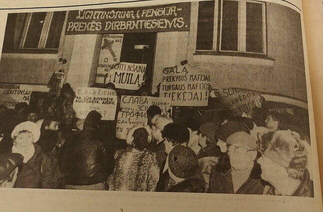 Piketas prieš Klaipėdos prekybos valdybos direktorių Arkadijų Lichtinšainą / Laikraštis „Darbininkų balsas“ / Autoriaus nuotr.