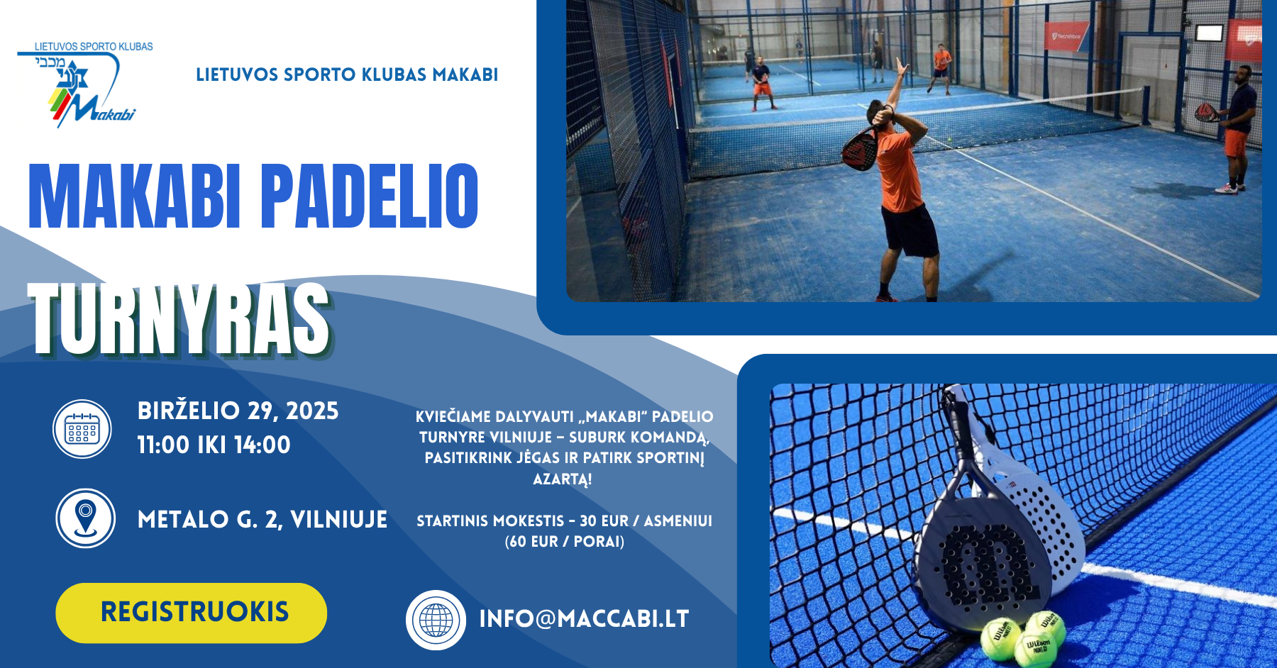 Pirmą kartą LSK „Makabi“ istorijoje organizuojamas padelio turnyras, kuriame susitiksime ne tik pasivaržyti, bet ir puikiai praleisti laiką sportiškoje bendruomenėje.