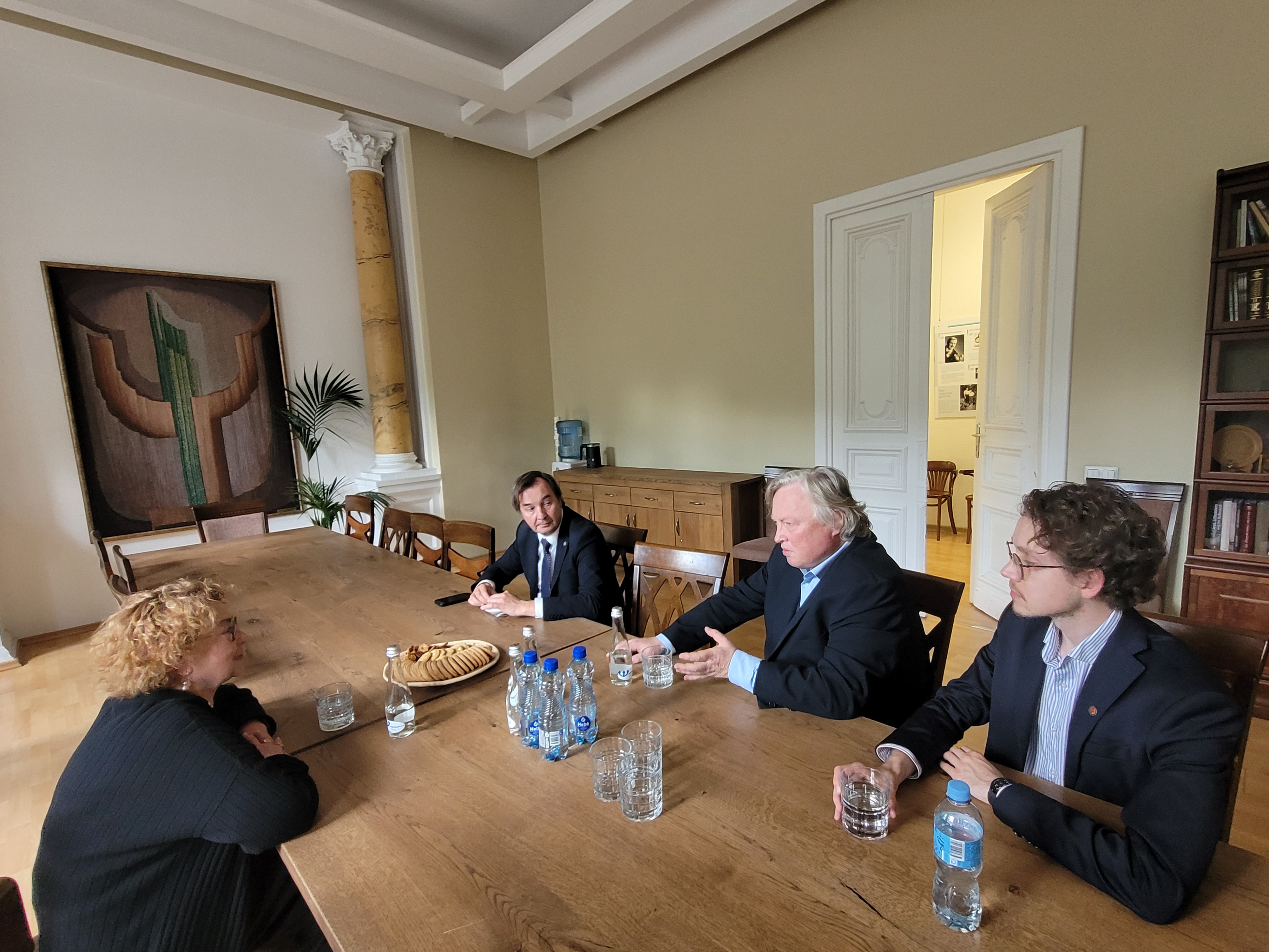 Pasirašant sutartį dalyvavo (iš kairės) Lietuvos žydų (litvakų) bendruomenės pirmininkė, advokatė Faina Kukliansky, Vilniaus universiteto rektorius Rimvydas Petrauskas, Partnerystės prorektorius Arūnas Vasiliauskas ir Ryšių su organizacijomis koordinatorius Daniel Šematovič / LŽB nuotr.