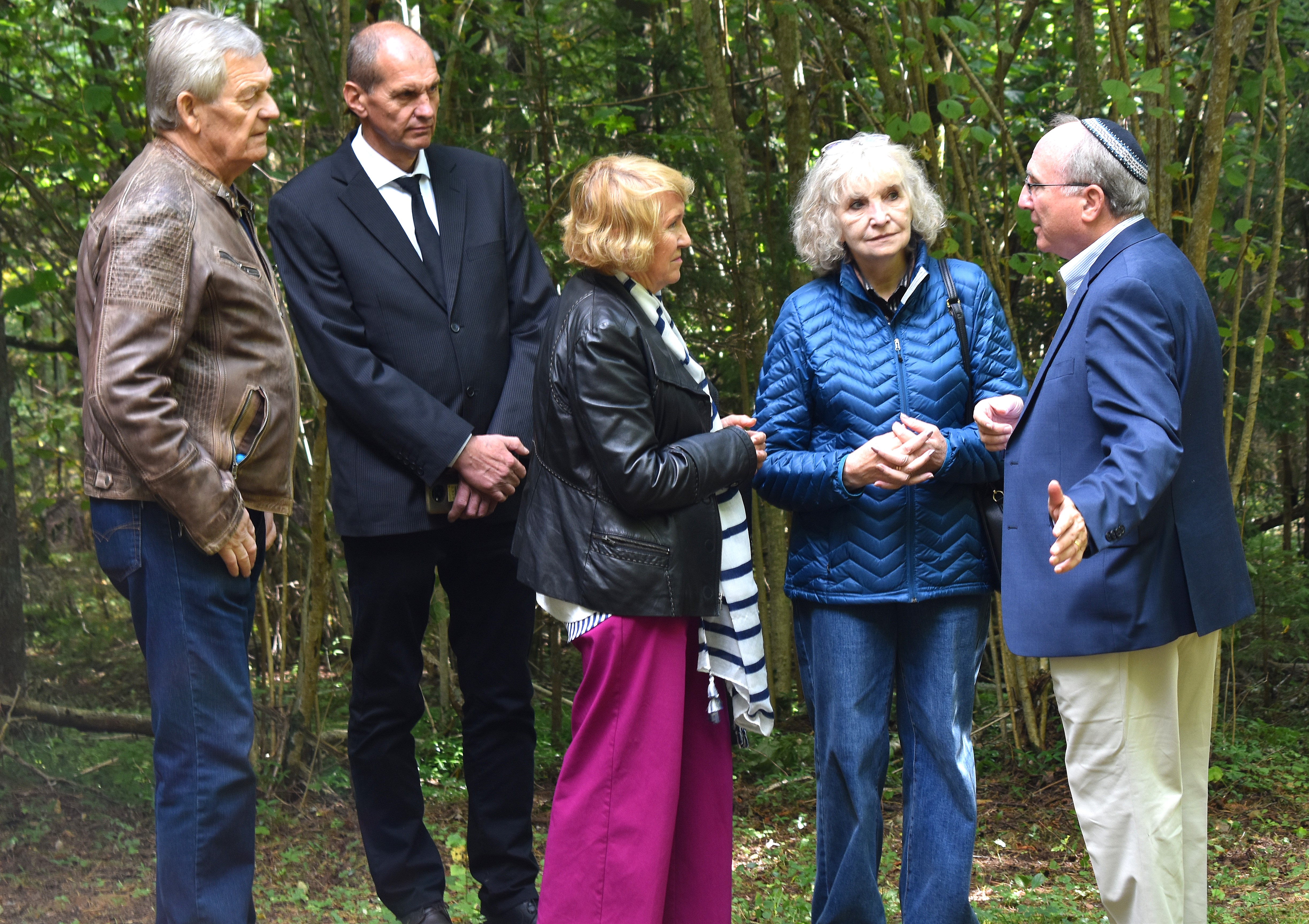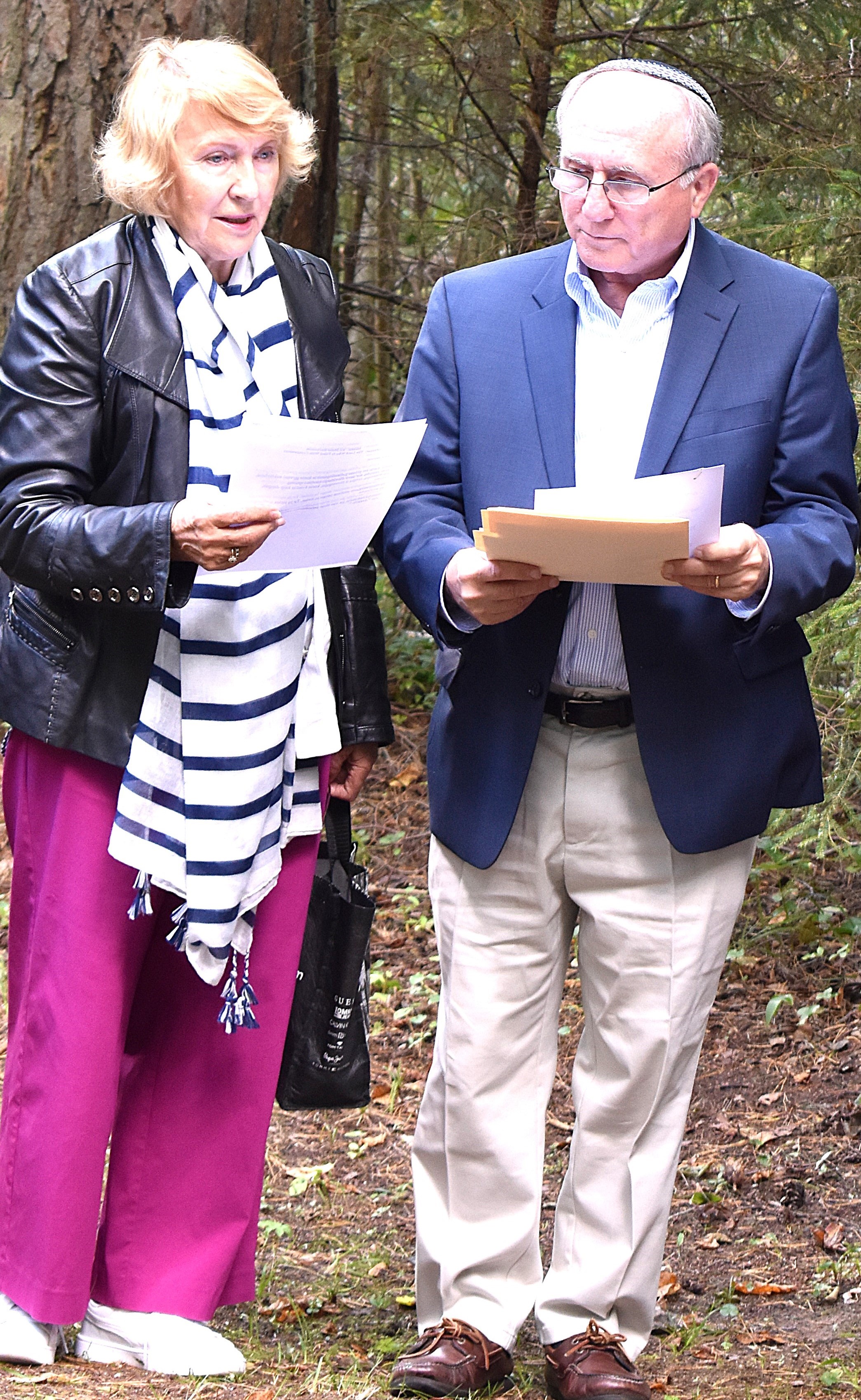 Organizacijos „Prisimenant Litvakus, Inc.“ („Remembering Litvaks, Inc.“) prezidentas Philip Shapiro (Filipas Šapiro) meldžiasi hebrajų kalba už nužudytus žydus subatėnus. Šalia – Aldona Shapiro (Aldona Šapiro).