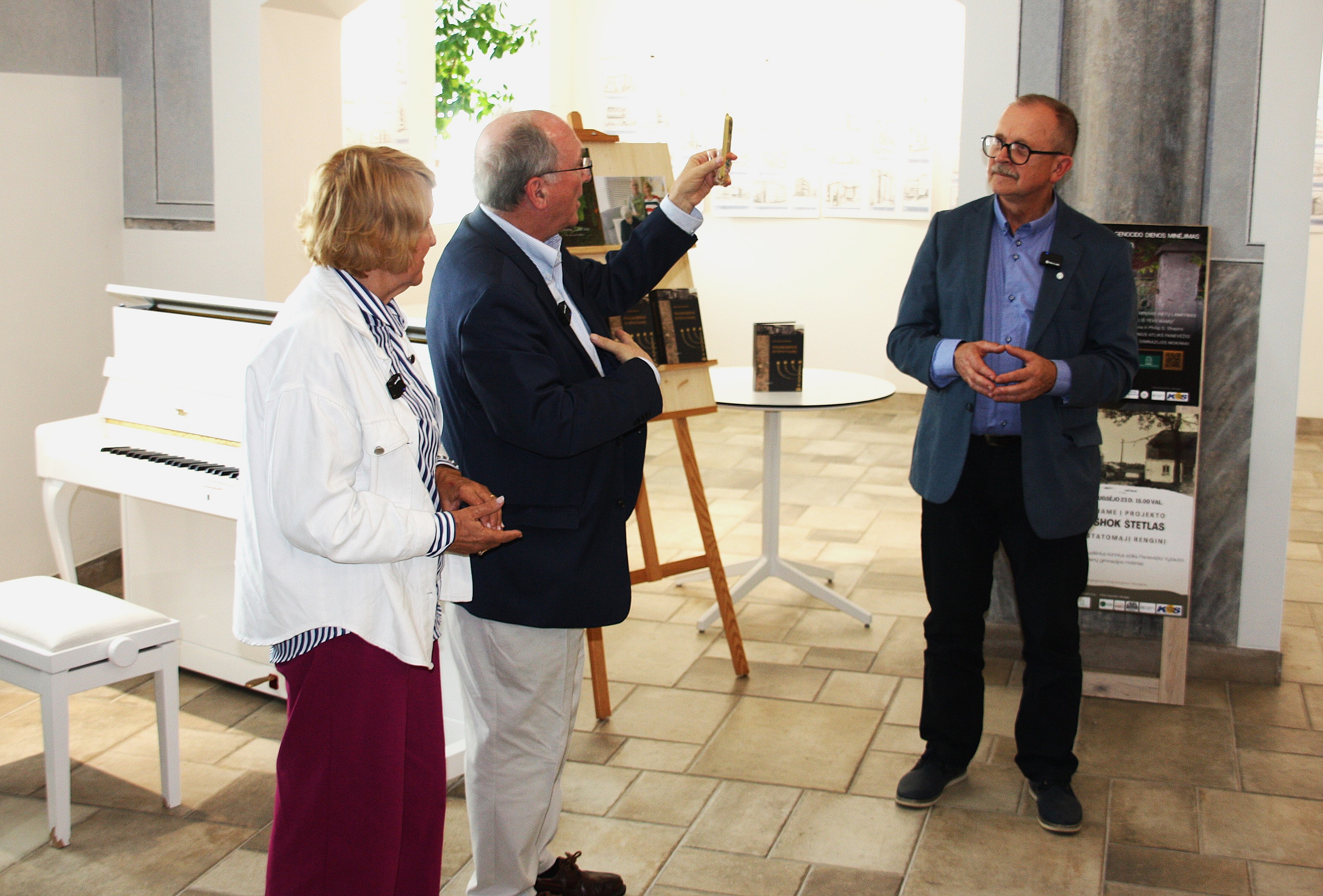 Renginio metu. Iš kairės: Aldona Shapiro (Aldona Šapiro), Jungtinių Amerikos Valstijų organizacijos „Prisimenant Litvakus, Inc.“ („Remembering Litvaks, Inc.“) prezidentas Philip Shapiro (Filipas Šapiro) ir Kupiškio rajono savivaldybės vicemeras Valdas Šateika.