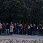 Gausiai susirinkę Panevėžio miesto gimnazijų mokiniai prie memorialo, pagal žydų papročius, padėjo simbolinius akmenėlius – ženklą, kad aukos nėra pamirštos.