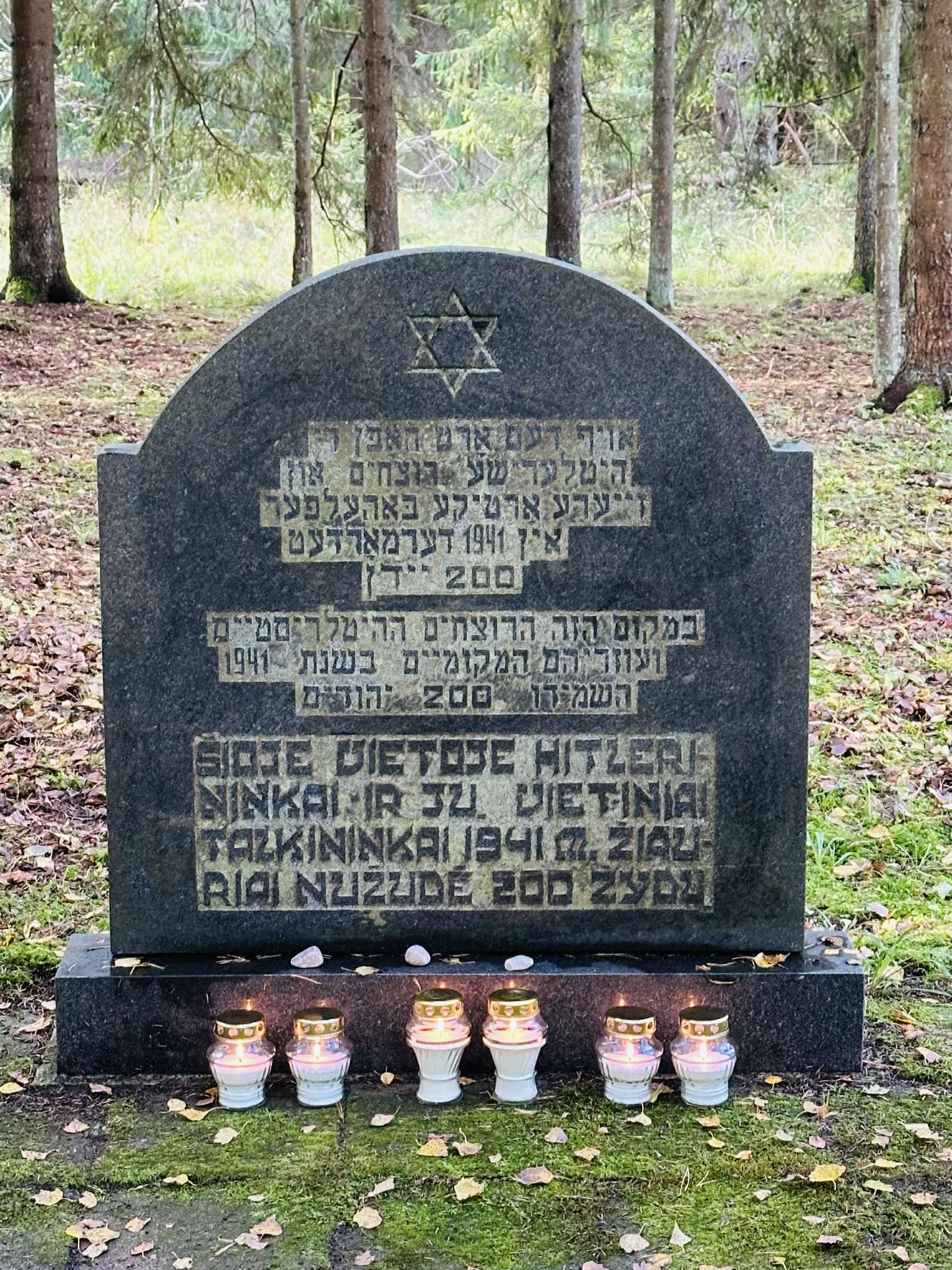 Šiandien pagerbtas tragiškas Palangos žydų: moterų, vaikų ir pagyvenusiųjų prieš 84-erius metus įvykdytų žudynių Kunigiškių miške atminimas. Žudynių ir kapo vietoje Palangos žydų bendruomenės pirmininkas Vilius Gutmanas kartu su Palangos miesto savivaldybės Kultūros skyriaus specialistais, vedėju Robertu Trautmanu ir Janina Baluže uždegė atminimo žvakeles ir padėjo akmenėlius.
