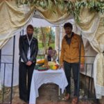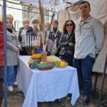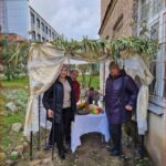 Nepaisant prasto oro – visą dieną lijo ir pūtė smarkus, šaltas vėjas – Panevėžio žydų bendruomenės nariai ir svečiai susirinko bendruomenės kieme prie Sukkot palapinės.