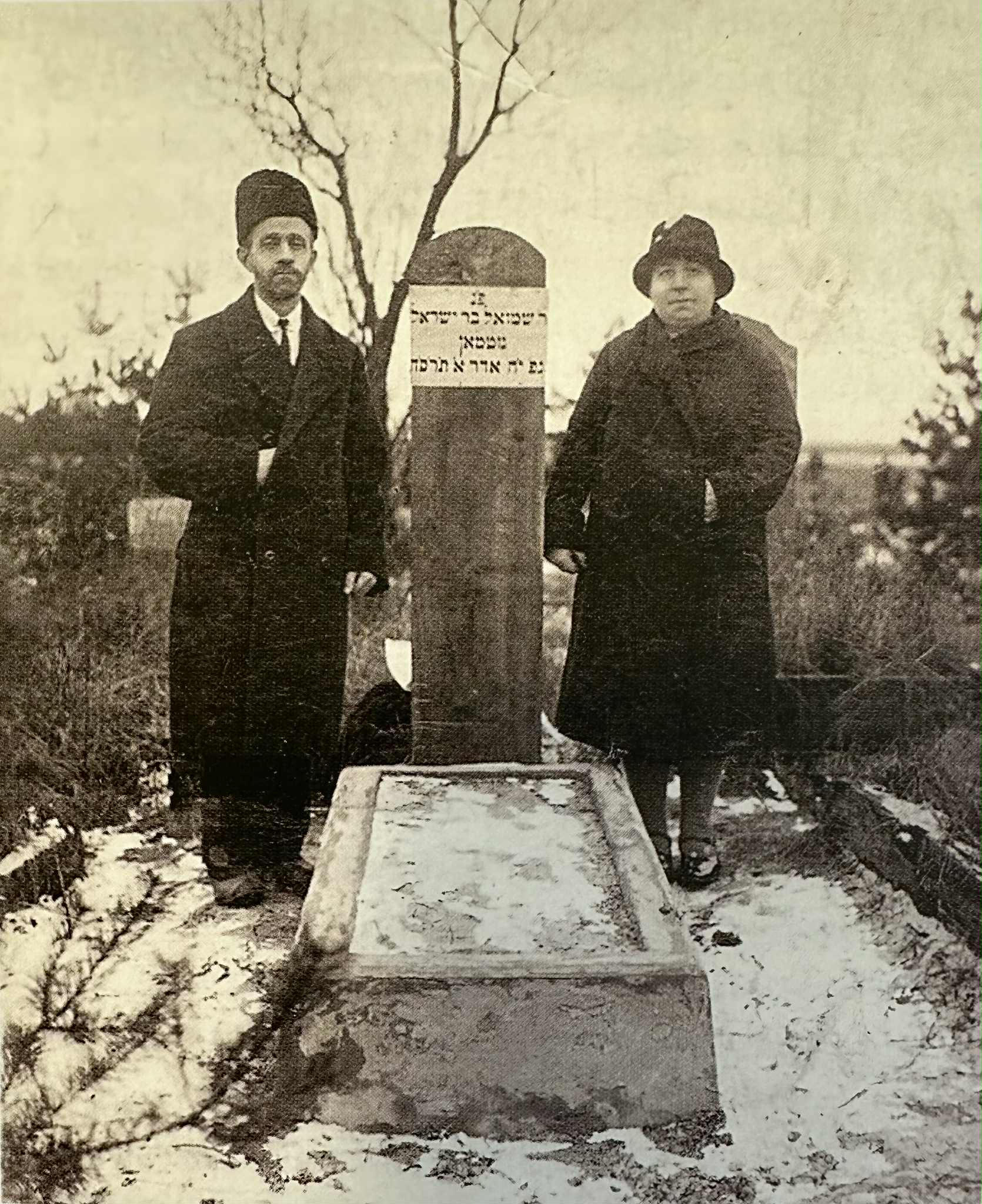 Baruchas ir Malka Gutmanai prie senelio Šmuelio Gutmano kapo Palangos senosiose žydų kapinėse, 1935 metai. Iš Barucho Gutmano šeimos archyvo.