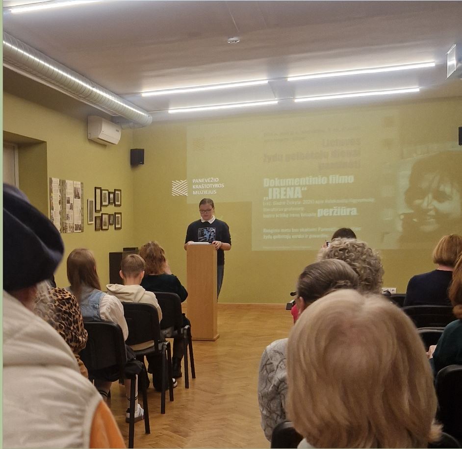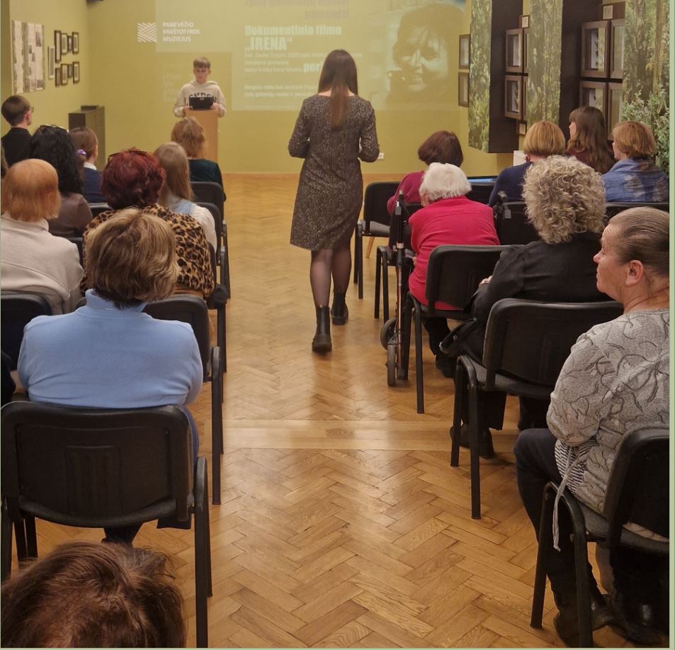 Susirinkusieji apie 1.30 val.  susikaupę žiūrėjo naujai sukurtą dok. filmą ,,IRENA“, režisierė, Lietuvos nacionalinės kultūros ir meno premijos laureatė, Giedrė Žickytė.