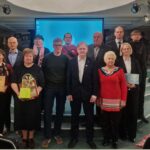 Gennady Kofman konferencijos pranešėjams įteikė dovanas – po macų pakuotę, 2026 metų žydų kalendorių, ponia Ona Juospaitienė -Pasvalio krašto muziejaus direktorei įteikė savo rankų darbo meninį atviruką su įrašu.
