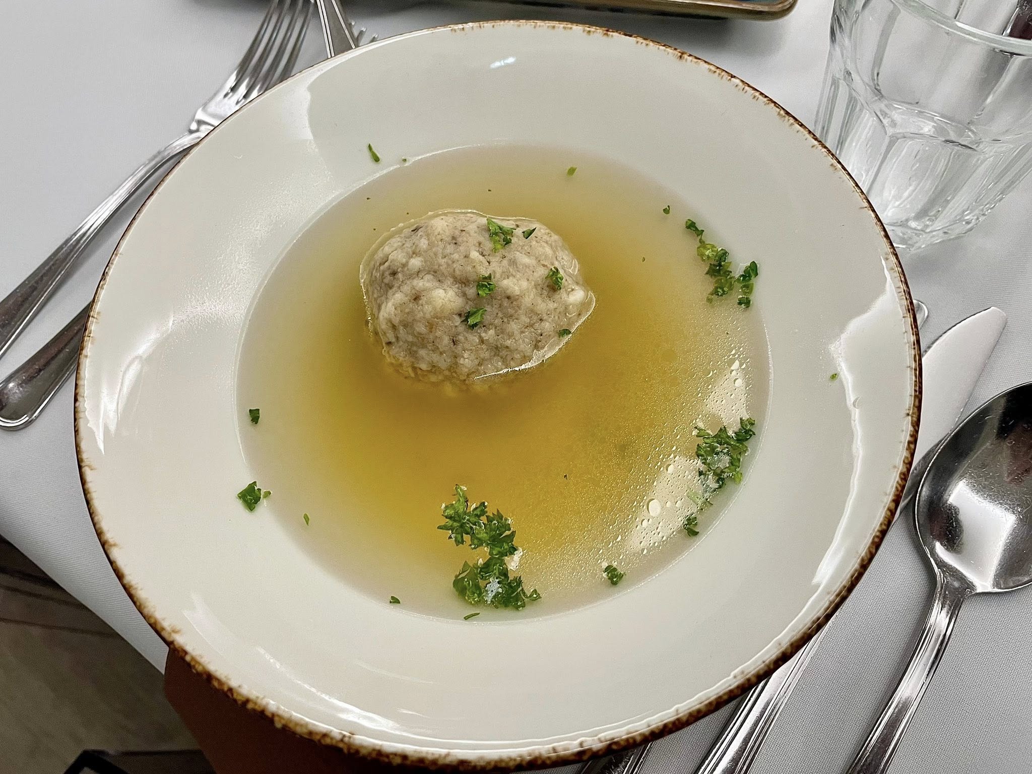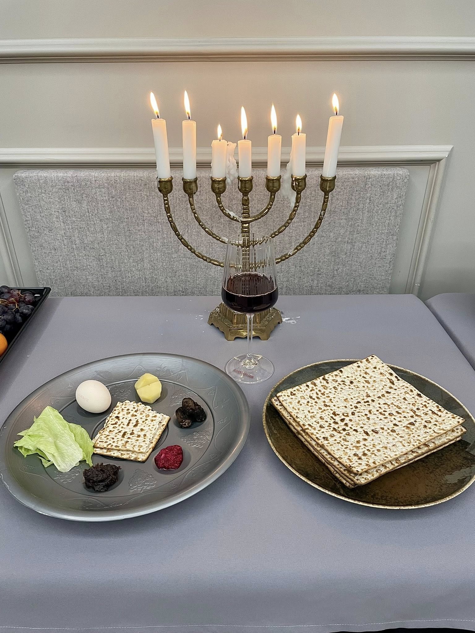 Kaip ir dera per Pesachą, ant stalo netrūko tradicinių žydų patiekalų – vištienos kepenėlių, kapotos silkės, sultinio su maca kneidala bei macos.