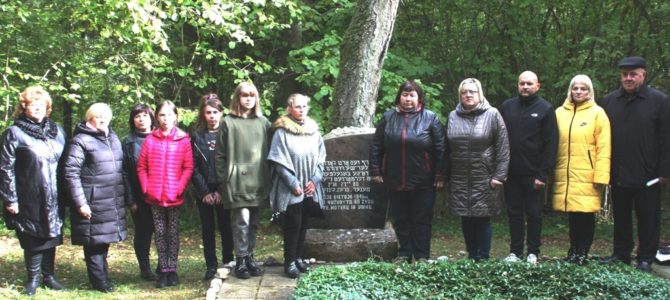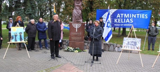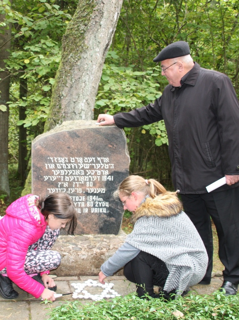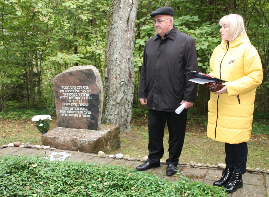Prie paminklo buvo uždegtos žvakelės, padėti akmenukai su nužudytų žydų pavardėmis ir Subačiaus seniūnijos seniūnės atvežta rudeninių gėlių puokštė.