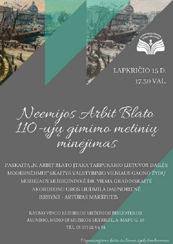 Kviečiame į Neemijos Arbit Blato 110 metinių minėjimą