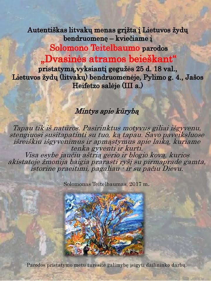 Rugpjūčio 24 d., ketvirtadienį, 19.00, Žydų kultūros ir informacijos centre (Vilnius).