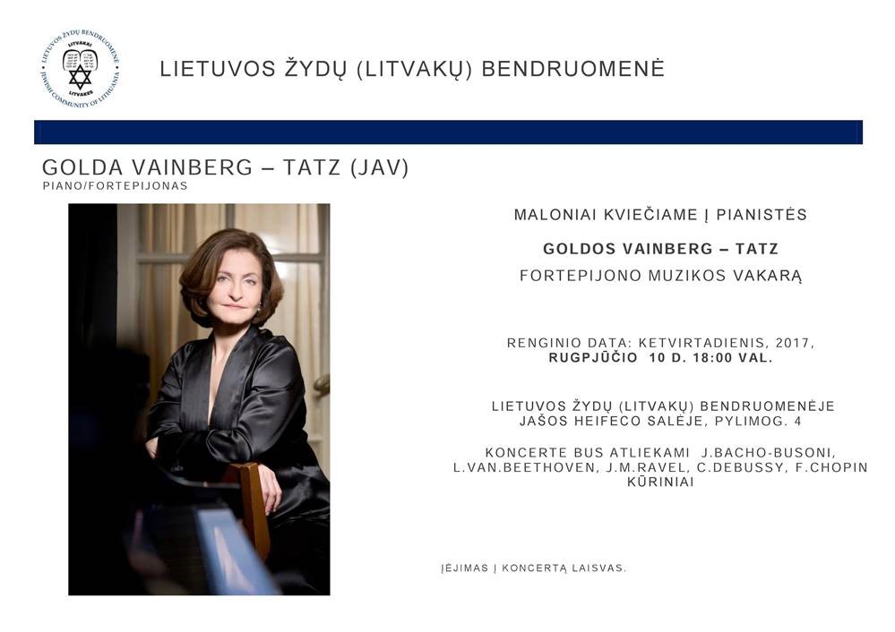 Golda Vainberg-Tatz vardas puikiai žinomas muzikos mylėtojams visame pasaulyje, taip pat ir Lietuvoje. G. Vainberg-Tatz nacionalinės M. K. Čiurlionio menų gimnazijos absolventė, ne kartą pasirodžiusi su Lietuvos orkestrais bei dirigentais, kameriniais ansambliais.