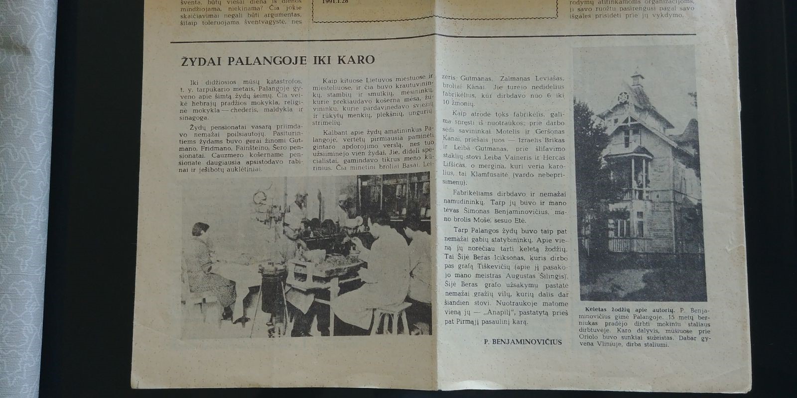 LŽB pirmininkė Faina Kukliansky gavo laišką iš Palangoje gyvenusių žydų Benjaminovičių šeimos, kurį prašoma perduoti Palangoje vyksiančios konferencijos dalyviams ir organizatoriams. Laišką skelbiame ir tinklapyje.