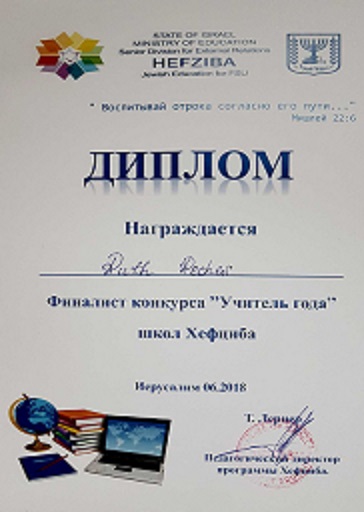 Vilniaus Šolomo Aleichemo ORT gimnazijos hebrajų kalbos mokytoja Ruth Reches tapo konkurso „Metų mokytojas – 5778“ finalininke, buvo apdovanota diplomu ir jos garbei Jeruzalėje buvo pasodintas medis. Garbingo įvykio proga mokytojai įteiktameos sertifikate parašyta citata iš Toros : “Auklėk vaiką pagal jo gabumus”.