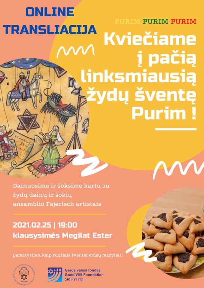 Vasario 25 d. švenčiamas Purimas – pati linksmiausia iš žydų švenčių, skirta prisiminti stebuklingą žydų tautos išsigelbėjimą nuo išnykimo. Šią dieną tradiciškai valgomi trikampiai „Hamantašen“ sausainiai , kuriais šiemet Lietuvos žydų (litvakų) bendruomenė vaišins ir valstybės vadovus.