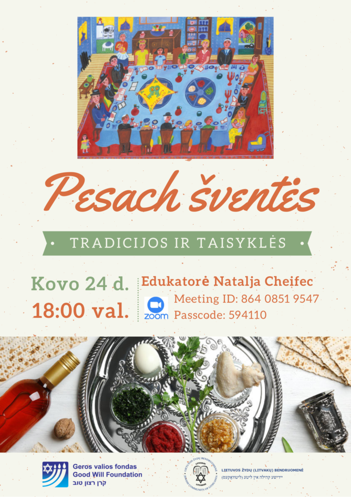 Kovo 24 d., Pesacho šventės išvakarėse, kviečiame jungtis į virtualų susitikimą su edukatore Natalija Cheifec bei sužinoti apie artėjančios didžiosios žydų metų šventės Pesach tradicijas!