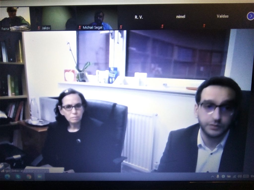 Nuotraukoje: LŽB pirmininkė Faina Kuklansky sveikina ZOOM susitikimo dalyvius.