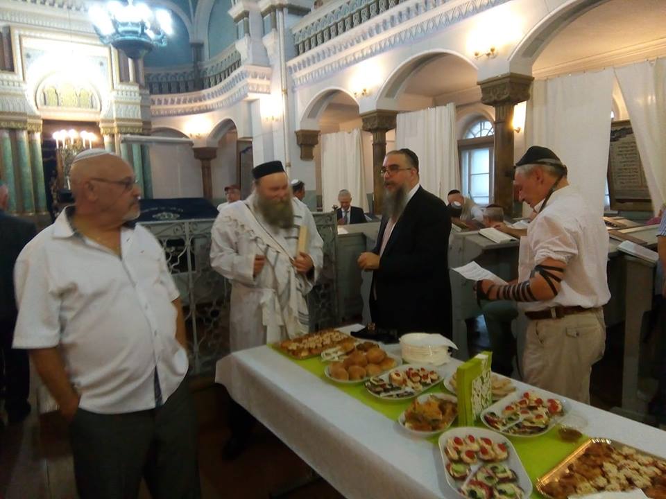 Susirinkusius sveikino Vilniaus religinės bendruomenės pirmininkas Simas Levinas, Lietuvos žydų (litvakų) bendruomenės pirmininkė Faina Kukliansky, padėkojusi rabinui Krinskiui, kuris Lietuvoje gyvena 24 metus, – už jo pastarųjų metų veiklą, ypač tapus Vilniaus sinagogos rabinu. Taip dėkojo rabino žmonai rebecinei Dinai, kuri ne tik rūpinasi savo didele šeima, ji dabar ruošia vaišes sinagogoje. Bendruomenės pirmininkė atsiprašė už buvusius nesutarimus su rabinu Krinskiu ir palinkėjo jam ir šeimai gražios šventės.