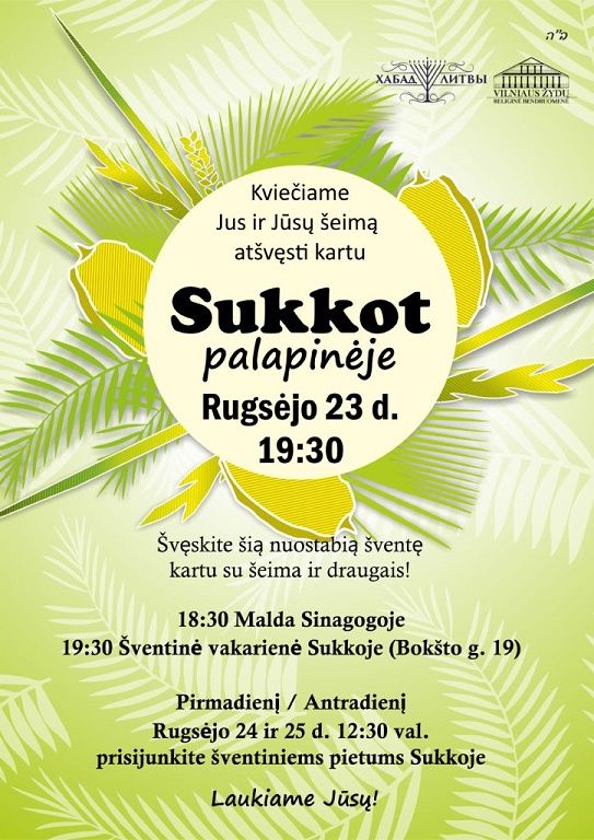 Kokie maisto produktai yra valgomi per Sukkotą? Nėra tradicinių Sukkoto maisto produktų, išskyrus kreplach (įdaryti virtiniai). Kadangi tai derliaus šventė, valgomi vaisiai ir daržovės – kas užauginta ir šviežia. Neapseinama be tradicinės chalos (pynutės), vištos sultinio, kugelio – visi skanūs tradiciniai žydų valgiai tomis dienomis atsiduria ant šventinio Sukkoto stalo.