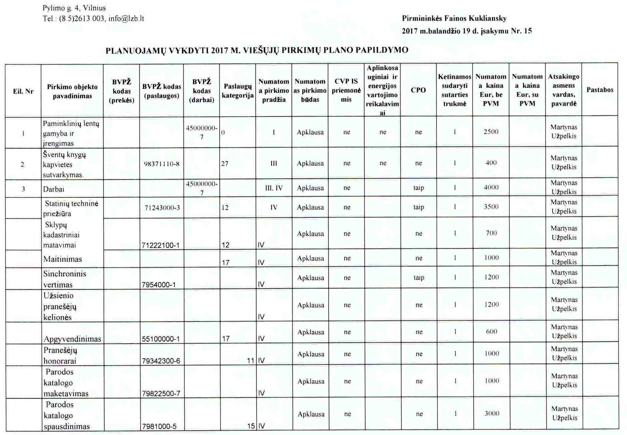 >>Planuojamų vykdyti 2015 m. viešųjų pirkimų planas