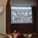 Museum director Markas Zingeris welcomed the audience to the event and introduced Danute Selčinskaja and her work to those who were not aware of them. Assistant director Ieva Sadzevičienė played the role of ushering the correct speaker to the podium and introducing them to the audience as well. By the time it began there were still no green diplomatic license plates on the cars outside and the “highest ranking official” inside, so to speak, was Faina Kukliansky, the chair of the Lithuanian Jewish Community. Selčinskaja gave a fairly brief description of the large exhibit using overhead projections of panels, but there were so many names, of both the rescuers and the people they rescued, that it all became almost an aural blur. There was simply no way to compress so many stories and so many lives into so short a presentation, but then, the audience knew that already, because many of them had put in the time to learn the real stories over the years, or had personal connections with the murdered and the saved.