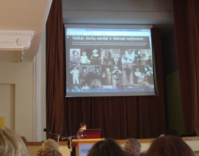 The name of the new mobile exhibit translates as something like “A Rescued Lithuanian Jewish Child Tells of the Shoa.” There is an “official” translation in English, because the new exhibit is completely bilingual, but the English version wasn’t really on display on March 10 during the presentation. In fact the English version of the exhibit, which Selčinskaja says is identical to the Lithuanian, is the main feature, the novelty that makes this exhibit different from its earlier incarnations under the same name. Selčinskaja says they also reworked most of the material, updated facts, fixed errors and expanded the scope of the exhibit from the earlier one of the same name which opened at the Tolerance Center in 2009 synchronously with the issuing of the large book of the same name, full of photographs of the rescued and their rescuers.