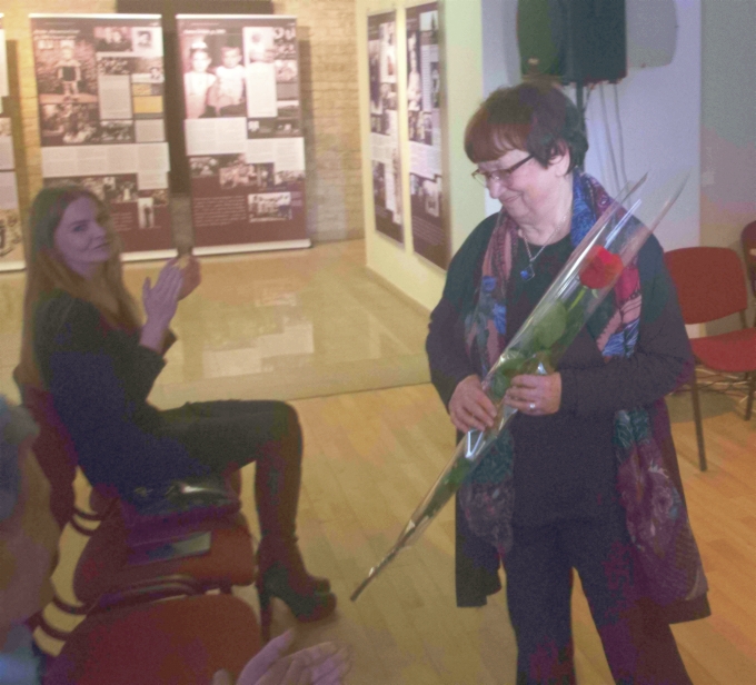 The event coincided with the 10th anniversary of Selčinskaja’s direction of the Rescuers Department at Vilna Gaon and museum staff marked the occasion with some short addresses and bouquets of flowers. Selčinskaja remained after the event and spoke with visitors.
