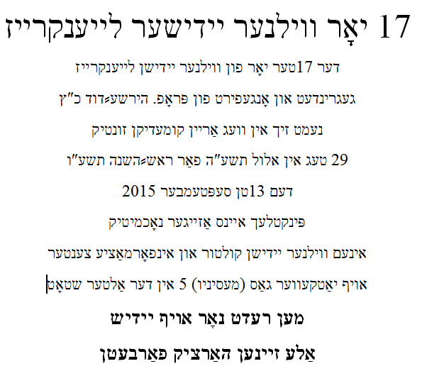 The Jewish Cultural and Information Center, a partnership project of the Jewish Community of Lithuania and the Vilnius Municipality, is proud to host the 17th annual Vilna Yiddish Reading Circle this season. The inaugural session will be held this coming Sunday, 13 September 2015, at 1 PM (1300) sharp, and further sessions will follow thereafter each Sunday at the same time. The instructor, Professor Dovid Katz (www.dovidkatz.net), has been volunteering to lead the circle since its inception in September 1999 for those in the Jewish community (and equally, those from all other communities in Vilnius!) who wish to develop their knowledge of Yiddish language, literature and culture.