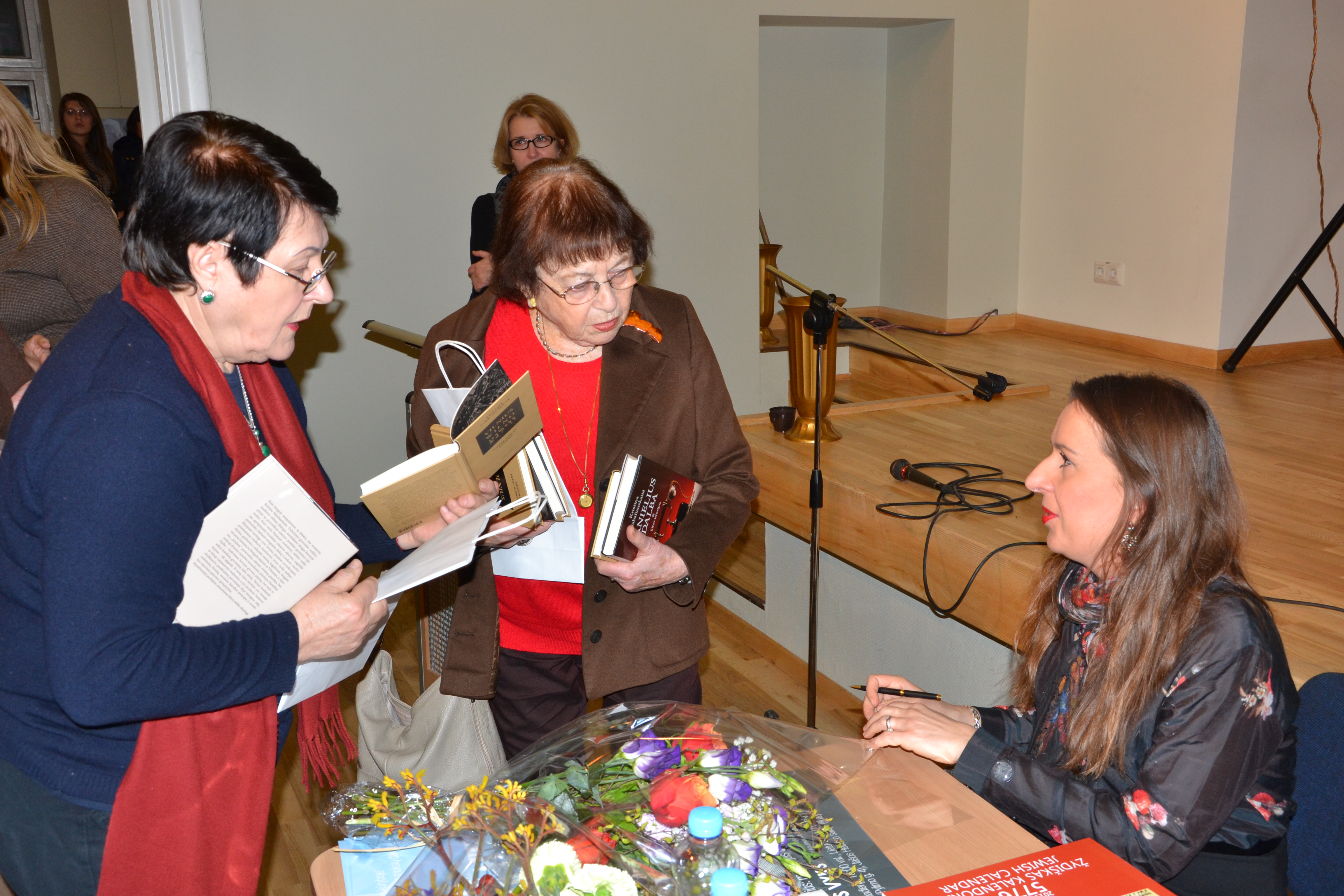 Moderator Toleikis addressed the full hall saying “Kristina has returned Lithuania’s historical memory. She brought back 200 years of history which, due to [historian] Šapoka’s paradigm were lost to Lithuanian consciousness. ‘Silva Rerum’ [‘Forest of Things’ trilogy by Kristina Sabaliauskaitė, 2008, 2011 and 2014] is for us an unexpected historical good fortune, as if the nation had won the lottery. We are lucky Kristina has brought back centuries of history. The author’s memory is not selective, she writes about everything in the past, about Poles and Jews as if they were her own people. This is the attitude of a 21st-century person, it could not be otherwise.”