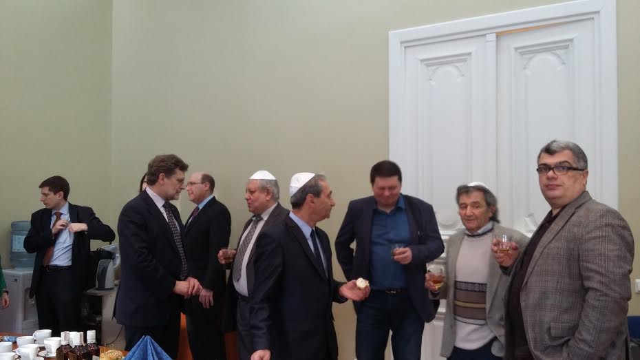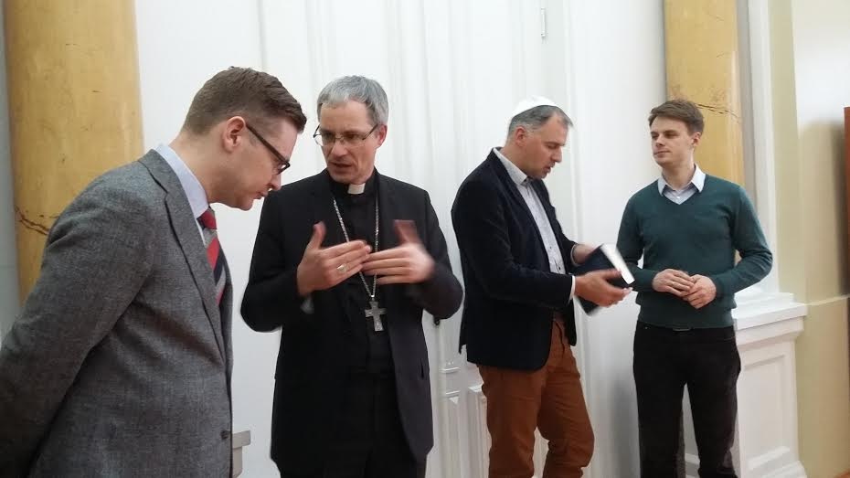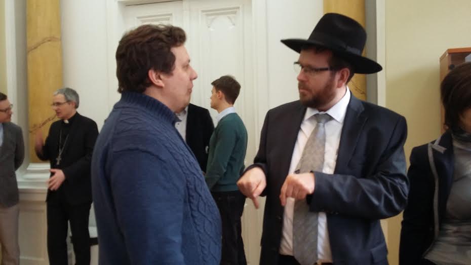 A meeting of the newly appointed rabbis Kalev Krelin and Shimshon Daniel Izakson (Isaacson) was held at the Lithuanian Jewish Community February 29. Participants included representatives of foreign embassies in Vilnius, the Lithuanian Foreign Ministry, Parliament, the Catholic Church, the Lithuanian Ministry of Culture and the regional Jewish communities in Lithuania. Also attending was Vilnius auxiliary bishop Arūnas Poniškaitis.