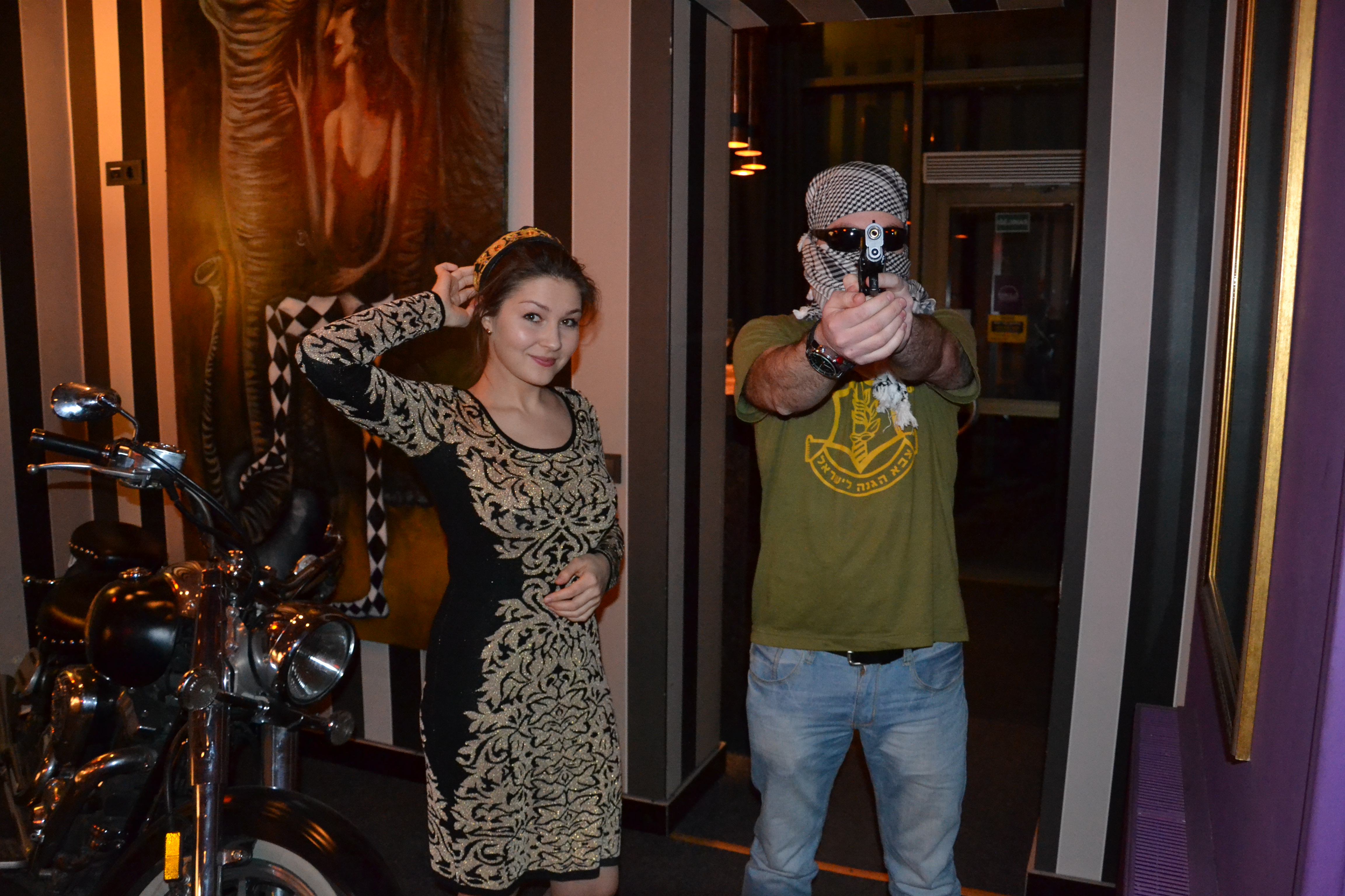 Purim-goers were asked to dress as their favorite movie star or film character and a contest was held to pick the winning female and male roles. Attendees dressed as the Uma Thurman character from Pulp Fiction, Audrey Hepburn and Superman received prizes donated by Lux Figura.