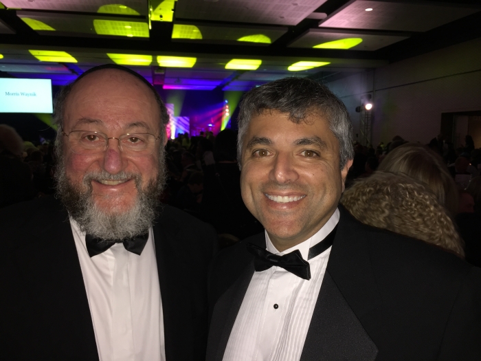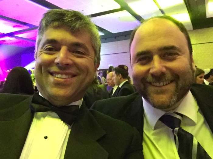 Vilnius Jewish Community member Grant Arthur Gochin was at the event and shared some of his snapshots. The first is a display of African beaded napkin holders passed out to women at the event. The next is Grant with Chief Rabbi Mirvis. Last but not least, our own Grant with his cousin, South African MP Darren Bergman.