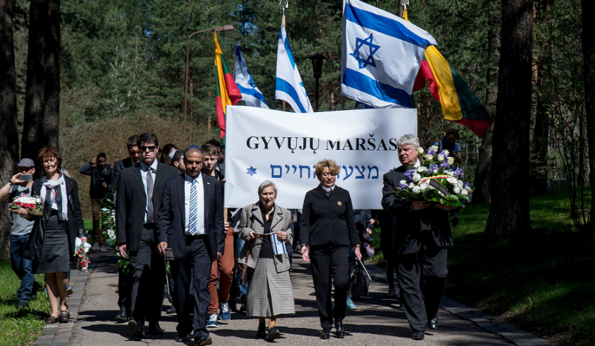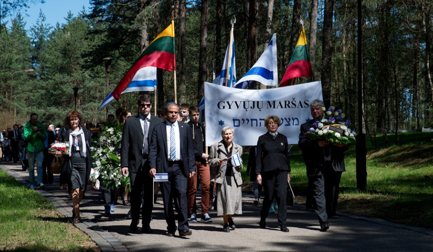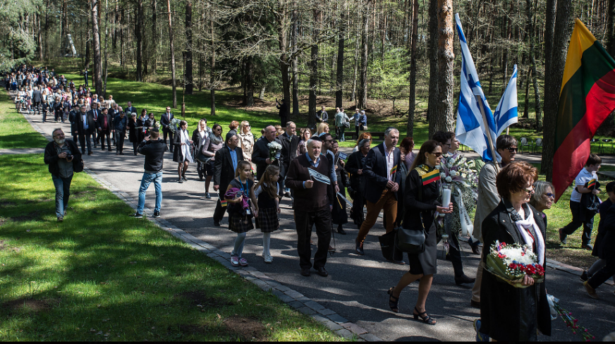 The event consisted of a march lasting under 20 minutes with marchers carrying Lithuanian and Israeli flags from the Ponar railroad station to the Paneriai (Ponar) Memorial Complex, where the commemorative ceremony too place. This is the route Jews of the Vilnius ghetto marched before they were murdered in the Ponar forest.
