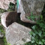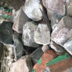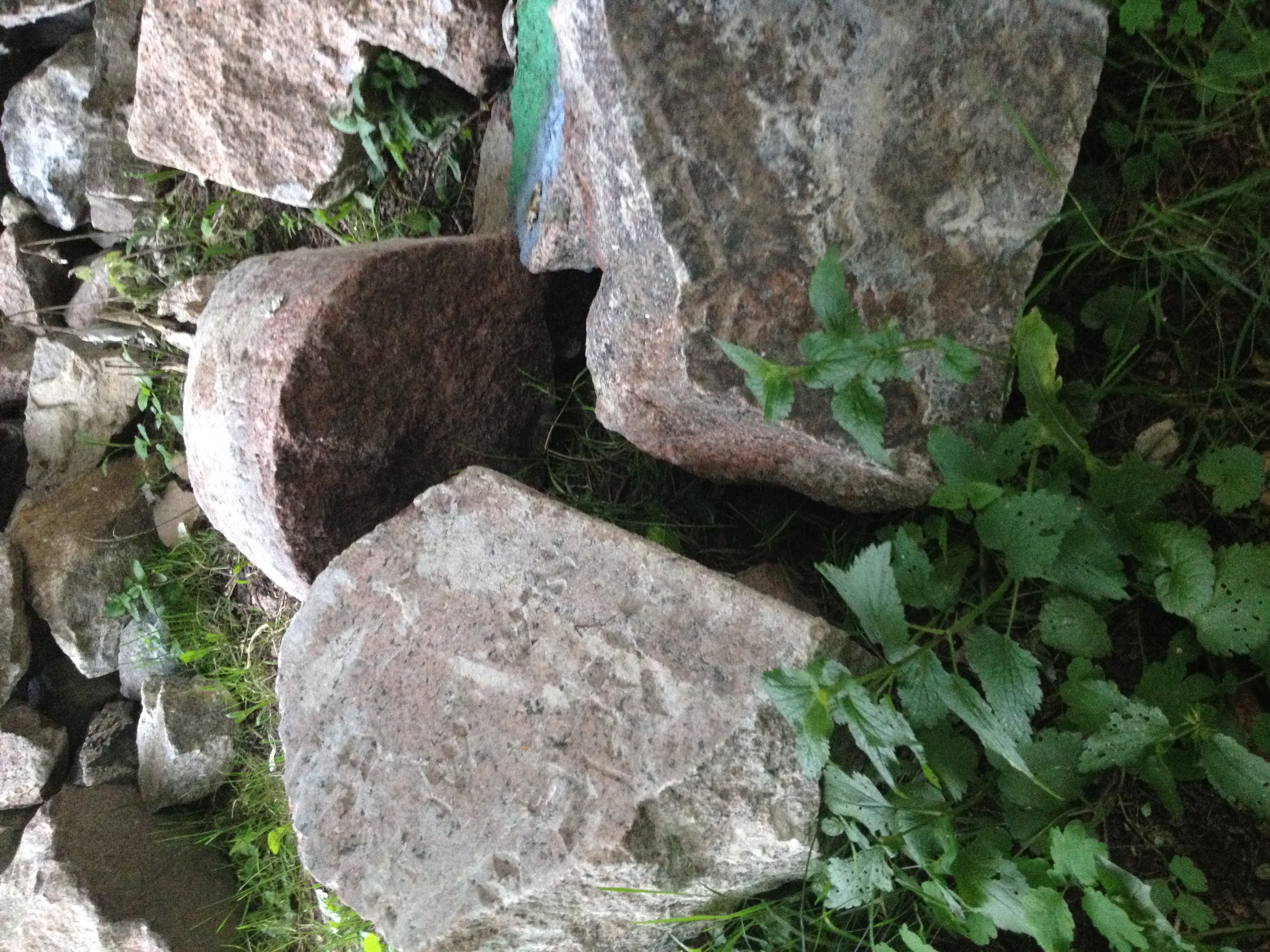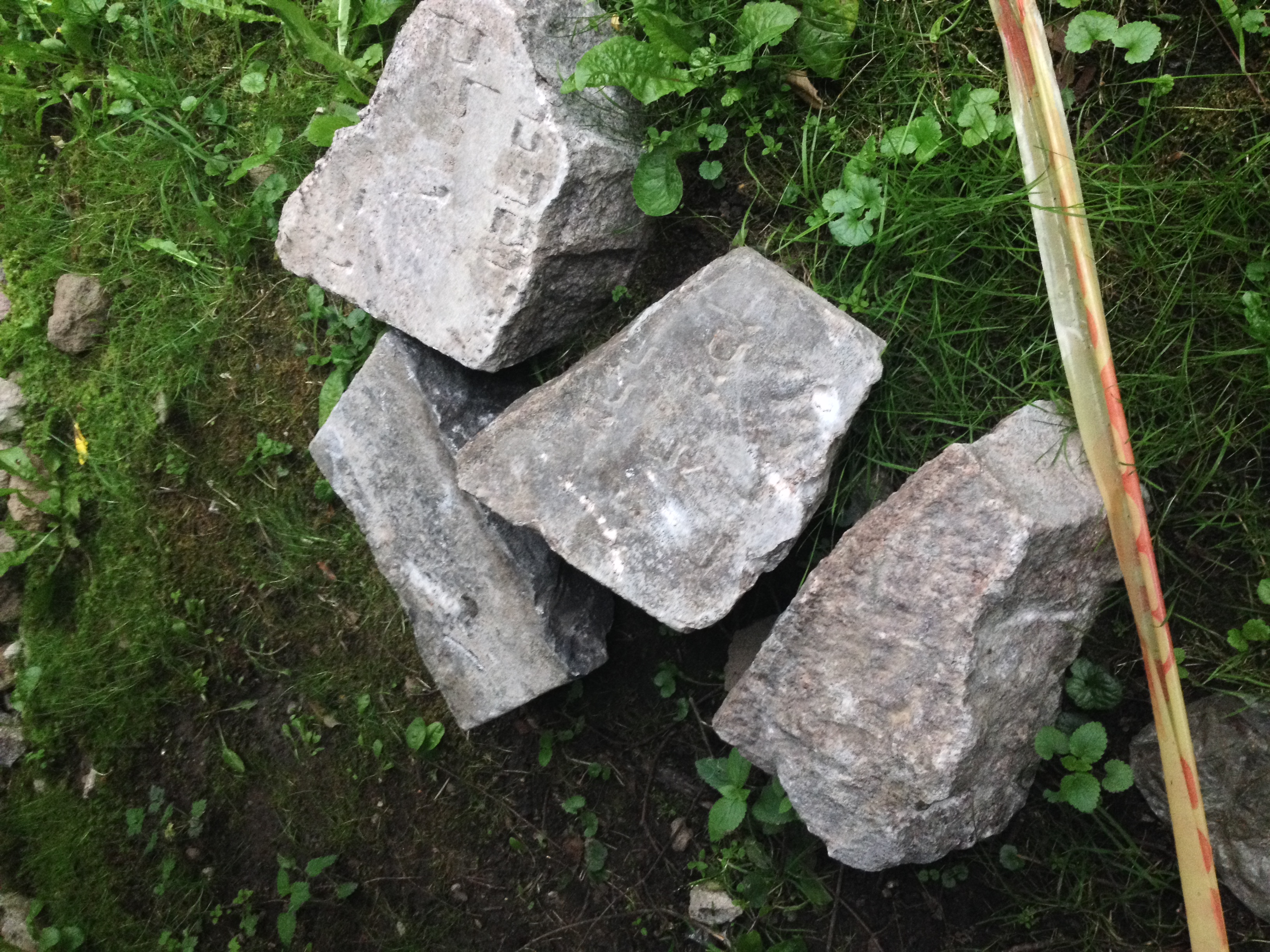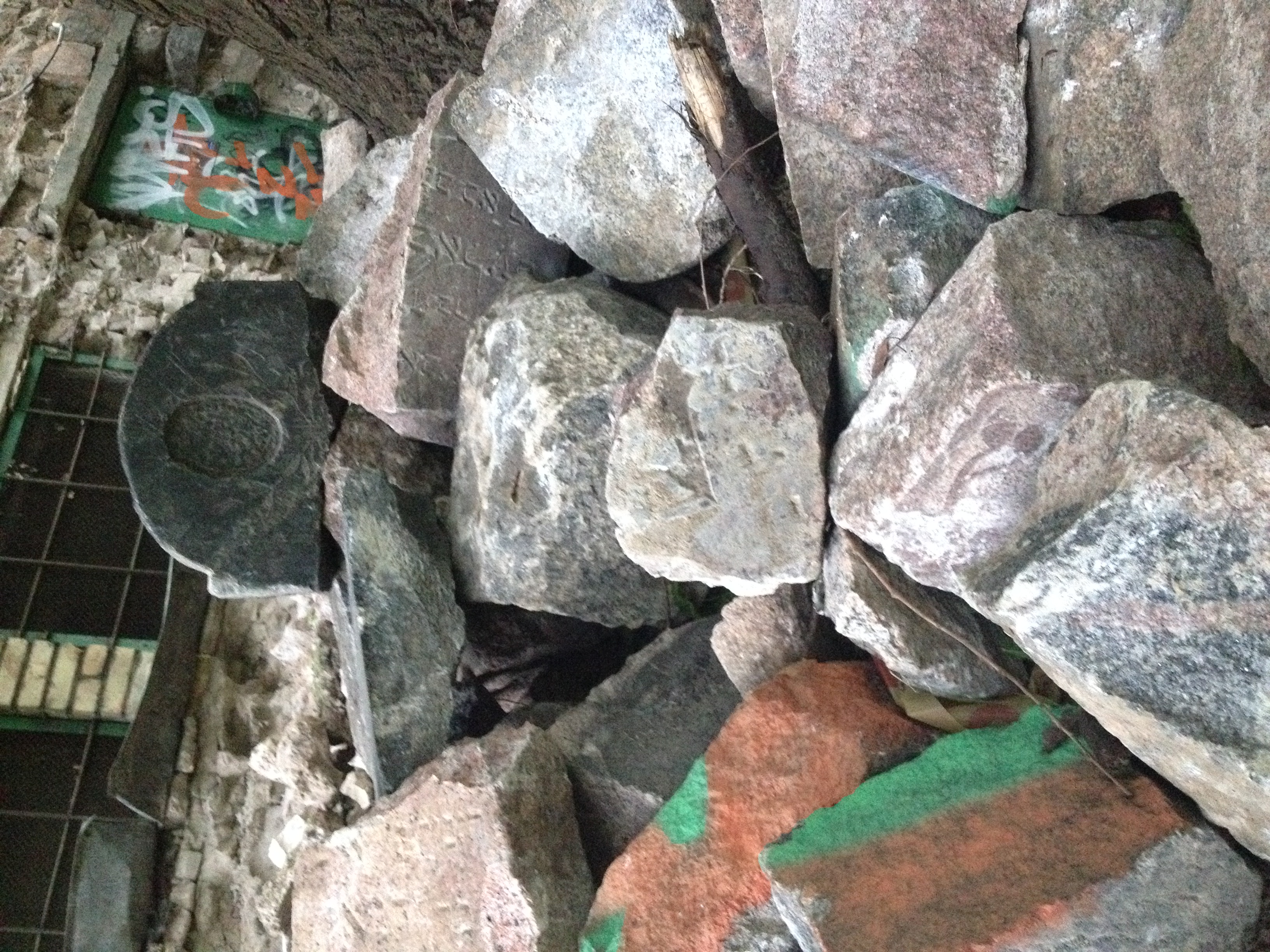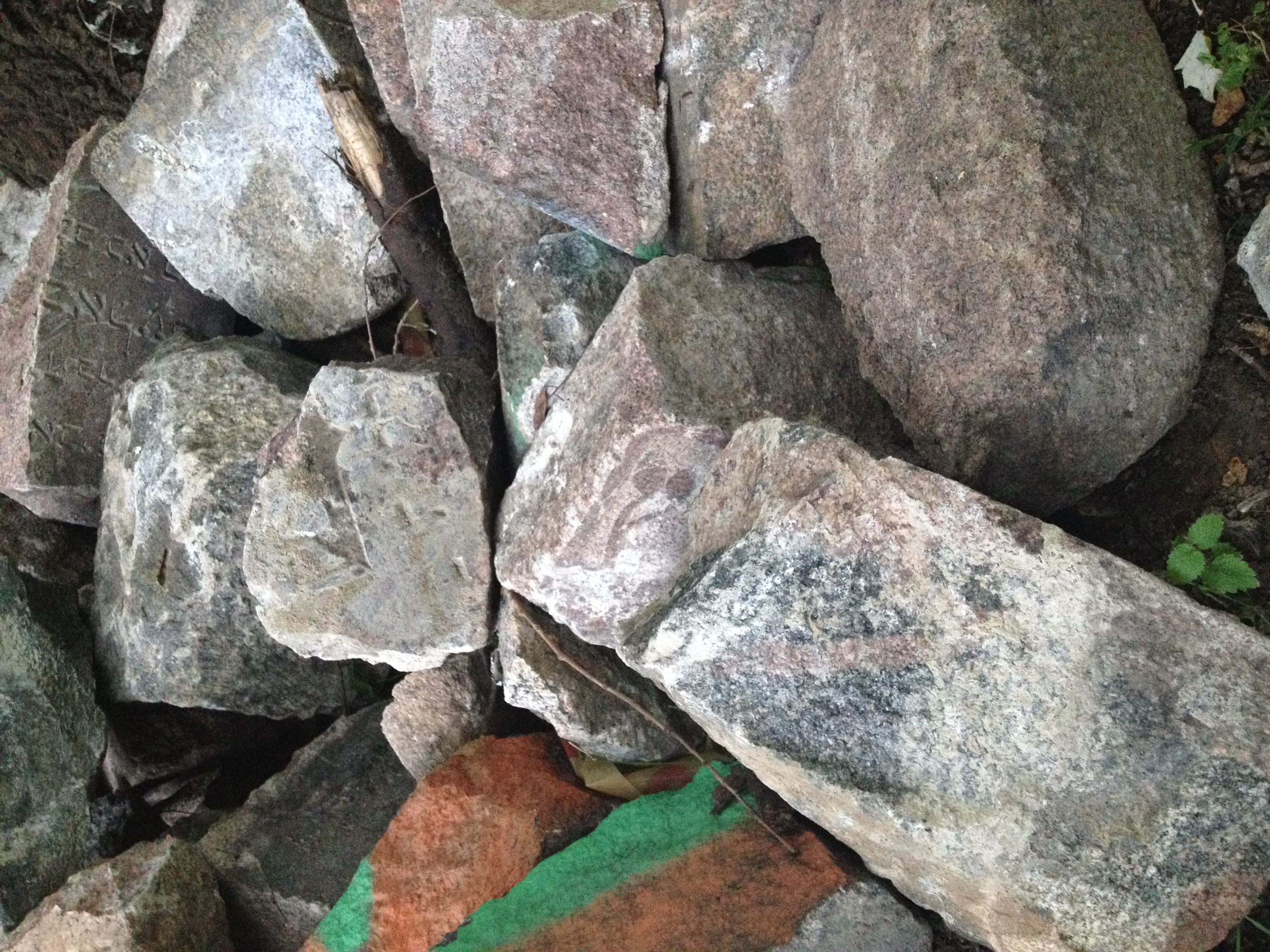 More than a year after a Vilnius resident reported his discovery an electric substation on Olandų street was constructed using Jewish gravestones, and following the announcement this June removal work had begun, the site is now littered with bits of headstones partially surrounded by a simple wire fence and some plastic tape. Most of the fragments are marked with graffiti on at least one surface, and several piles of larger pieces contain partial inscriptions in Hebrew characters, see pictures below.