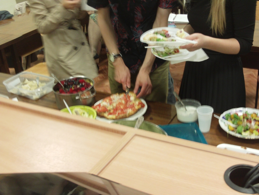 As another successful summer program of the Vilnius Yiddish Institute at Vilnius University wound down, writer Ellen Cassedy and the students, faculty and staff held a vegetarian potluck August 10.