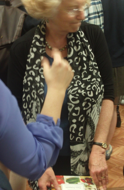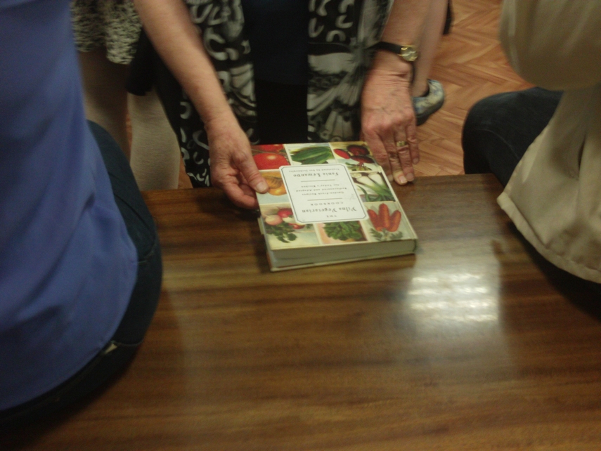 Ellen Cassedy continued to mingle among the potluck-goers talking about Fania Lewando and showing a republication of her vegetarian cookbook published by Alma Littera in Vilnius in 2015.