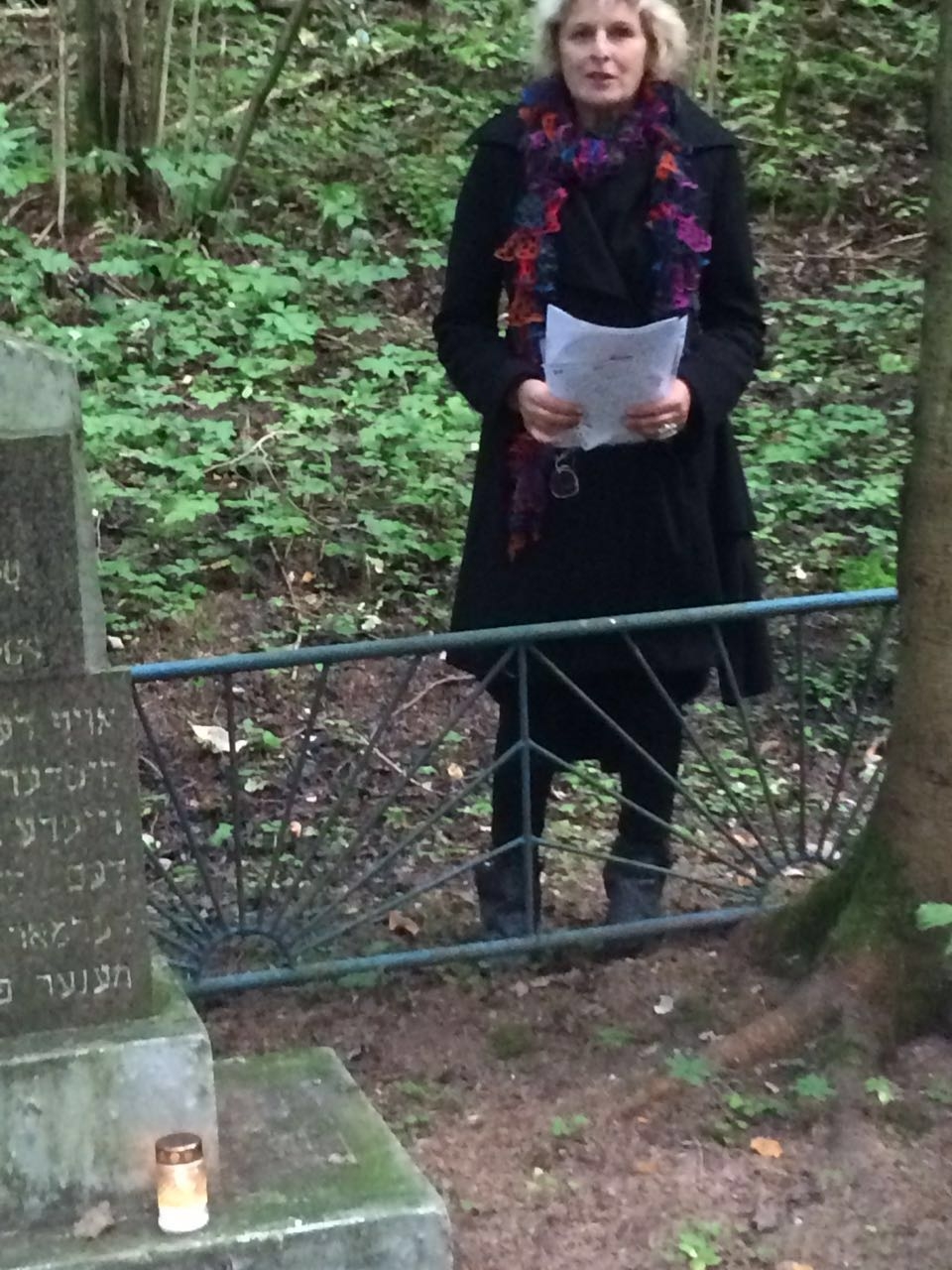 This past Friday, on Lithuania‘s official Holocaust remembrance day, we were able to add another milestone. In response to Rūta’s call on social networks, about 80 Lithuanians of all ages, among them several outstanding local cultural and media figures, came at 5 P.M. to Vėliučionys and marched the almost two kilometers from the manor to the murder site, where a very moving ceremony was held to honor the long-forgotten victims.