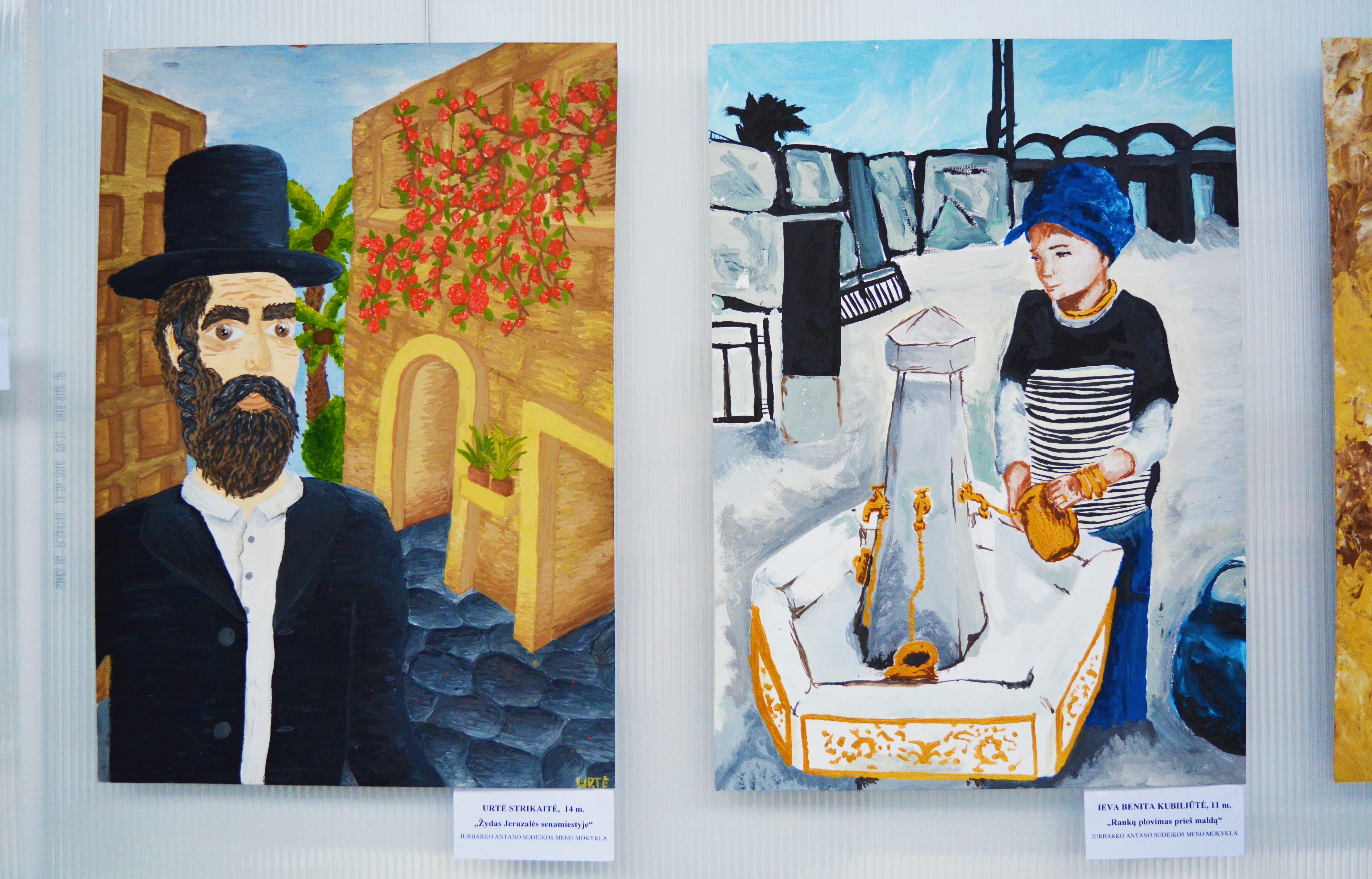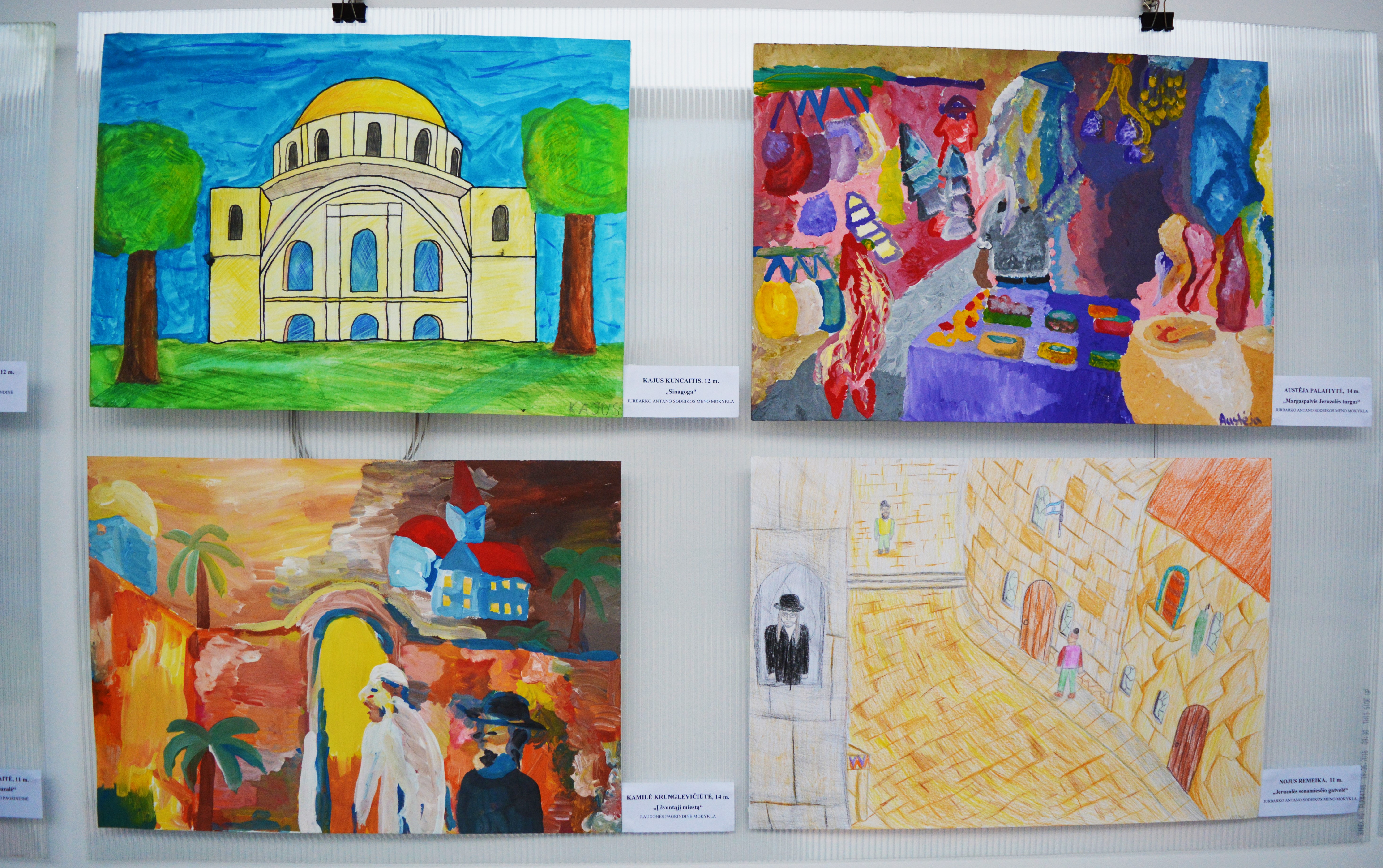 Before the event the Israeli ambassador and Skirmantas Mockevičius, the head of the Jurbarkas regional administration, met and talked with students from the Antanas Giedraitis-Giedrius Gymnasium in Jurbarkas, and later with Lithuanian Jewish Community chairwoman Faina Kukliansky and Community members visited the Jewish cemetery in Jurbarkas. The official event took place at the Jurbarkas Regional Administration Public Library in the afternoon, where the photo exhibit “Pope Francis’s Visit to Israel” was opened and a sculpture by sculptor Dovydas Zundelovičius dedicated to the memory of the Jewish community of Jurbarkas was unveiled. The winners of a student drawing contest called “Let’s Draw Jerusalem” were also awarded, photos of trips to Israel were displayed and Jewish cuisine was showcased.