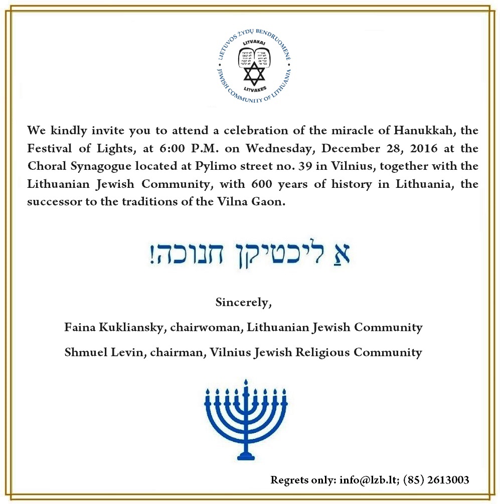 Come Celebrate Hanukkah at the Choral Synagogue of Vilnius