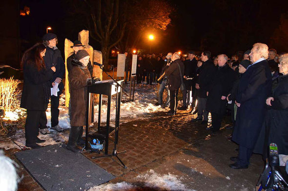 In their speeches minister of state Gernot Erler and mayor Götzmann both referred the current events in Germany concerning the Alternative for Germany right-wing party and [AfG party member] Björn Höcke’s statements about the Holocaust memorial in Berlin. They cautioned we must never forget. We must remember the victims of the Holocaust today and for future generations, they said.