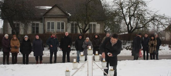 A menorah with candles was lit at the former Jewish house of prayer and participants vitisted four mass murder sites 2 kilometers from Šešuoliai on the way to Želva. Members of the Ukmergė Jewish Community and the Gutman family, now resident in Vilnius but originally from Šešuoliai, participated in the commemoration.