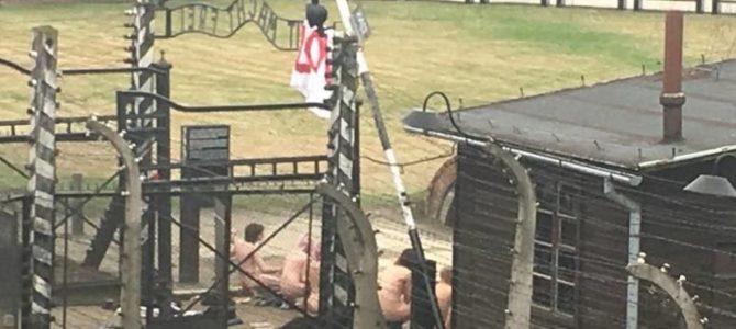 Friday 14 men and women slaughtered a lamb and disrobed at the Auschwitz-Birkenau death camp in Poland, according to the museum there. The group, ranging in age from approximately 20 to 27 and whose identities, citizenship and motivations haven’t been determined, chained themselves to the front gate with the infamous inscription Arbeit Macht Frei, or Works Sets You Free, according to the report. Local media reported the group filmed their actions from a drone. The police reported all participants were detained.