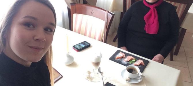 Monday Ukmergė Jewish Community member Elena Jakiševa met Viktorija Marija Lukoševičiūte from Vilnius, a student from Vilnius University who is writing her final bachelor’s work on kosher food. She conducted an interview and then they both went to the hotel/restaurant Big Stone in Ukmergė (Vilkomir), which has kosher dishes on offer. Big Stone makes kosher dishes in cooperation with members of the Ukmergė Jewish Community, including Elena Jakiševa.