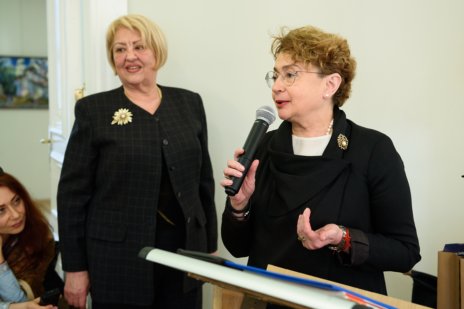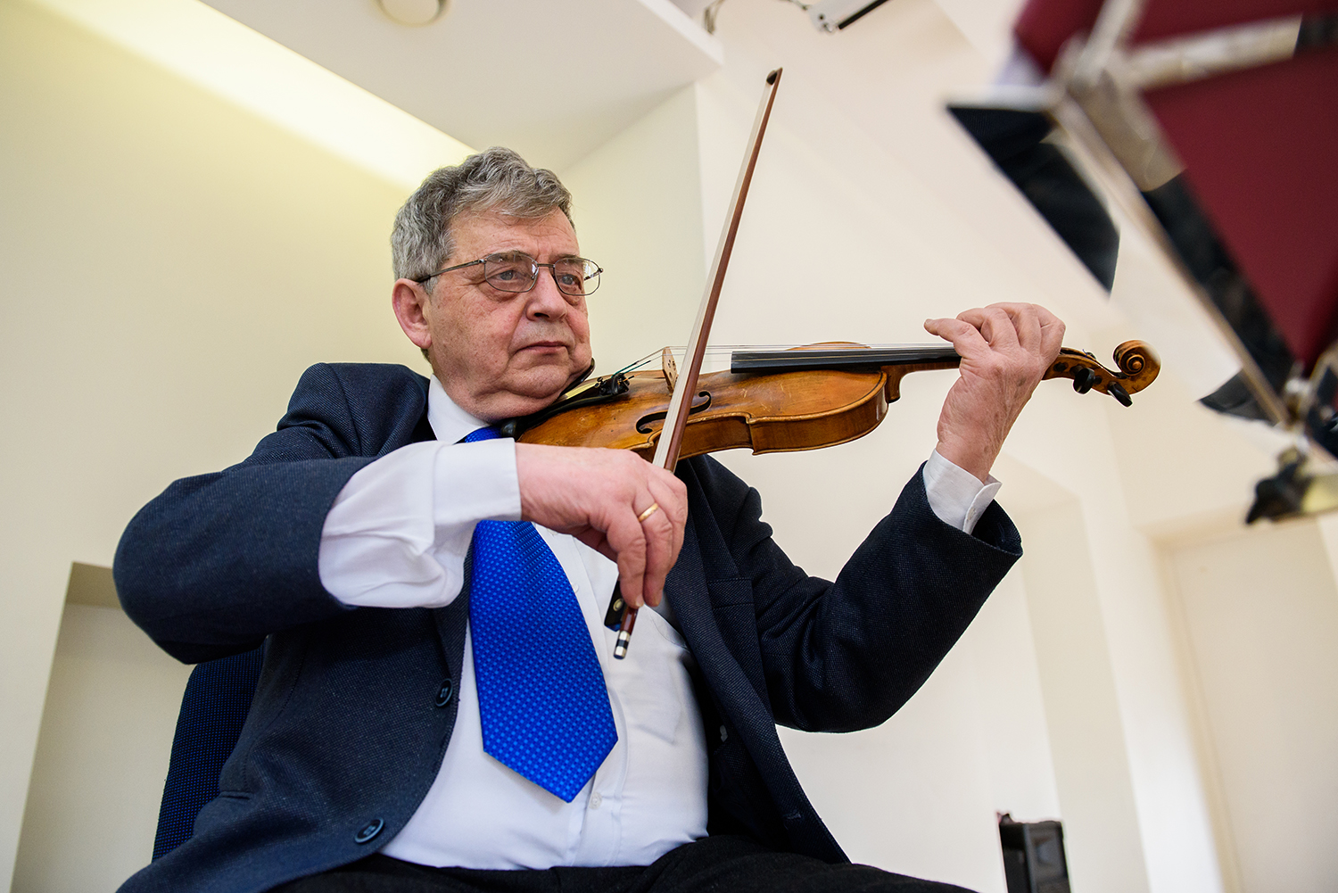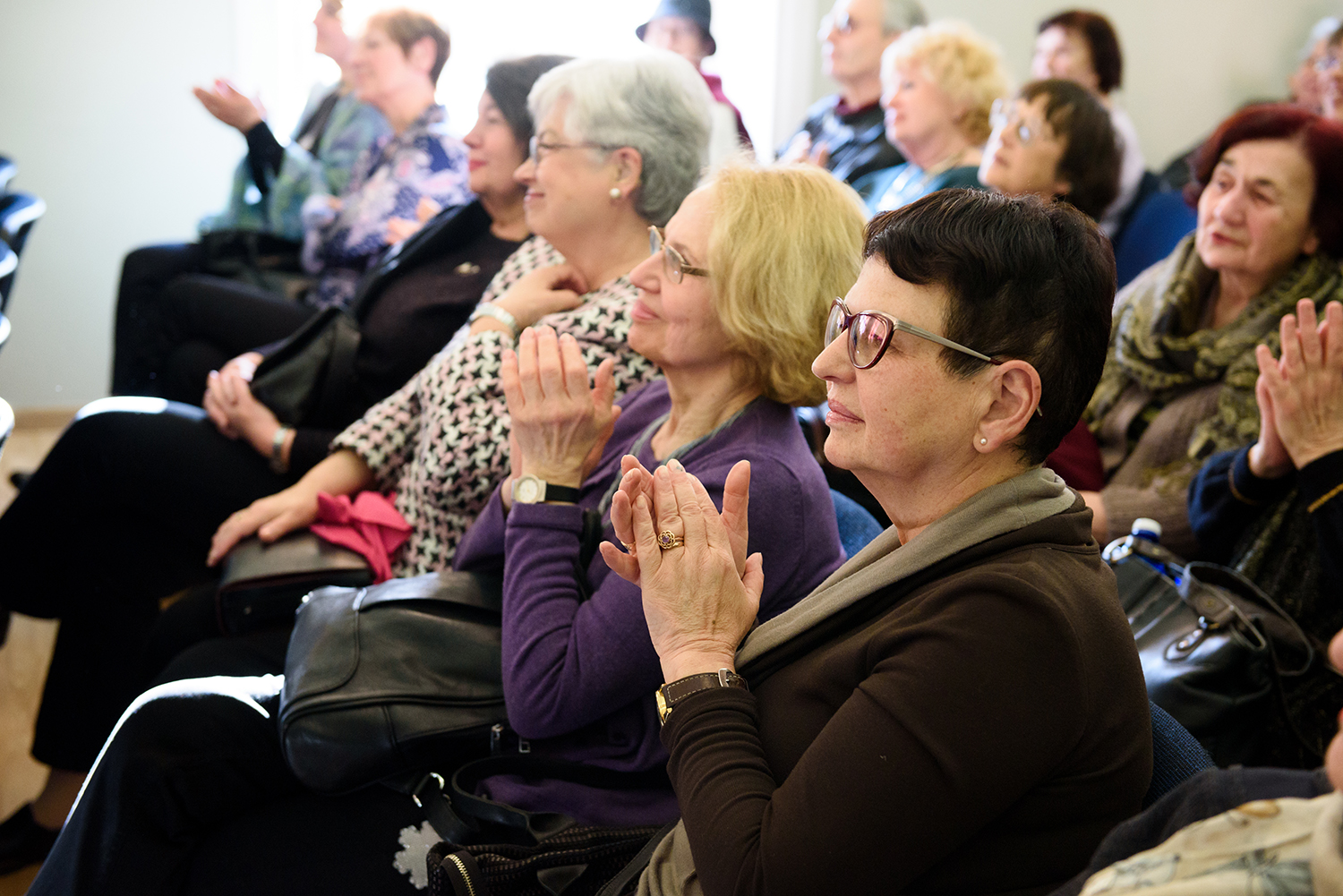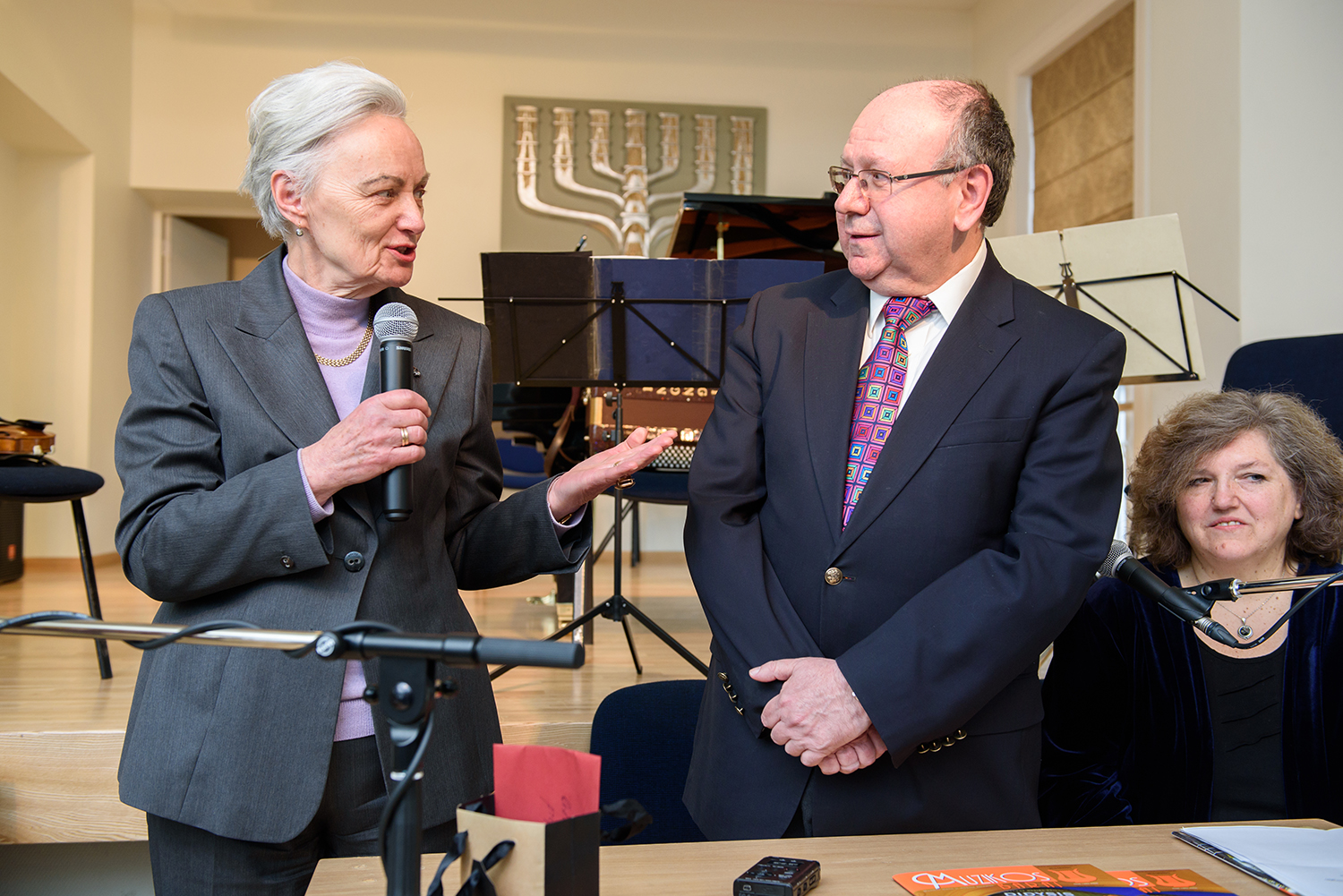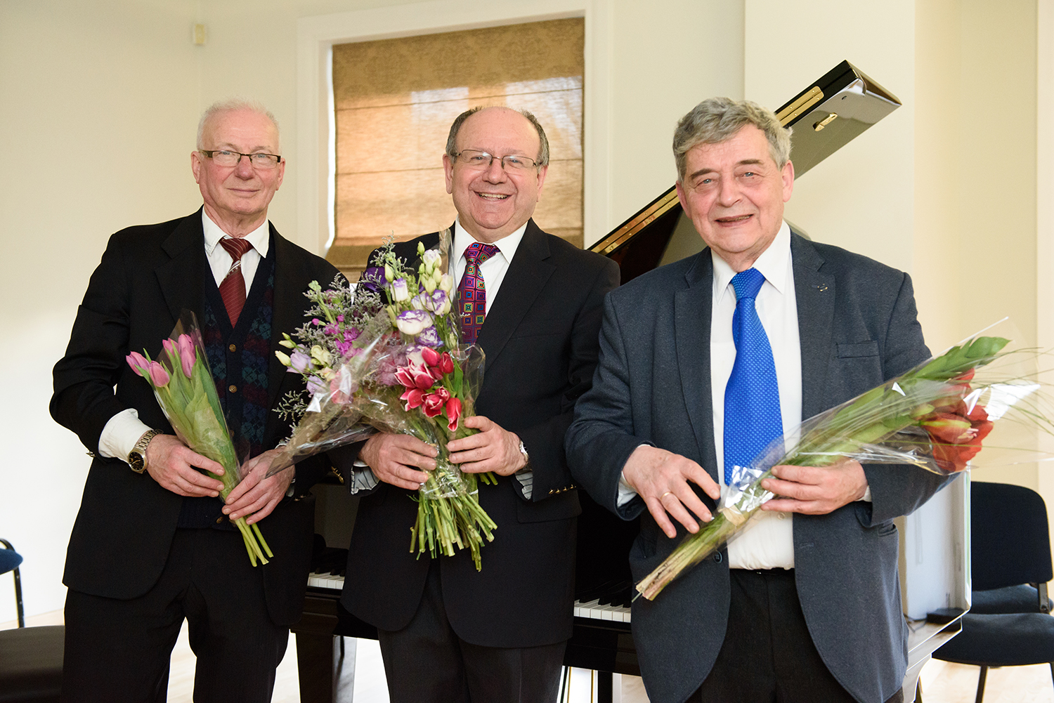 The birthday celebration was part of the Destinies program of evening cultural events initiated and organized by LJC deputy chairwoman Maša Grodnikienė, who used the occasion to honor the memory of Melnikas’s father Isaiah Melnik, who would have turned 110 that same day. He was a well-known pharmacist at the Vilnius Central Pharmacy (on what is now Gedimino prospect) and at the Žvėrynas Pharmacy in Vilnius, where he made his own preparations in his time. He survived both Stutthof and Dachau. He was beloved by all and was a calm and warm person who enjoyed attending all sorts of concerts. His son Leonidas’s musical career began when his mother took him to the Ąžuoliukas school. His first teacher was the famous pianist Nadežda Duksdulskaitė. “My entire childhood was illuminated by my parents, the very best, the very wisest people, and family remains extremely important to me,” Melnikas said of himself before embarking on a performance of tango melodies with violinist Boris Traub, cellist Valentinas Kaplūnas and accordion player Gennady Savkov.