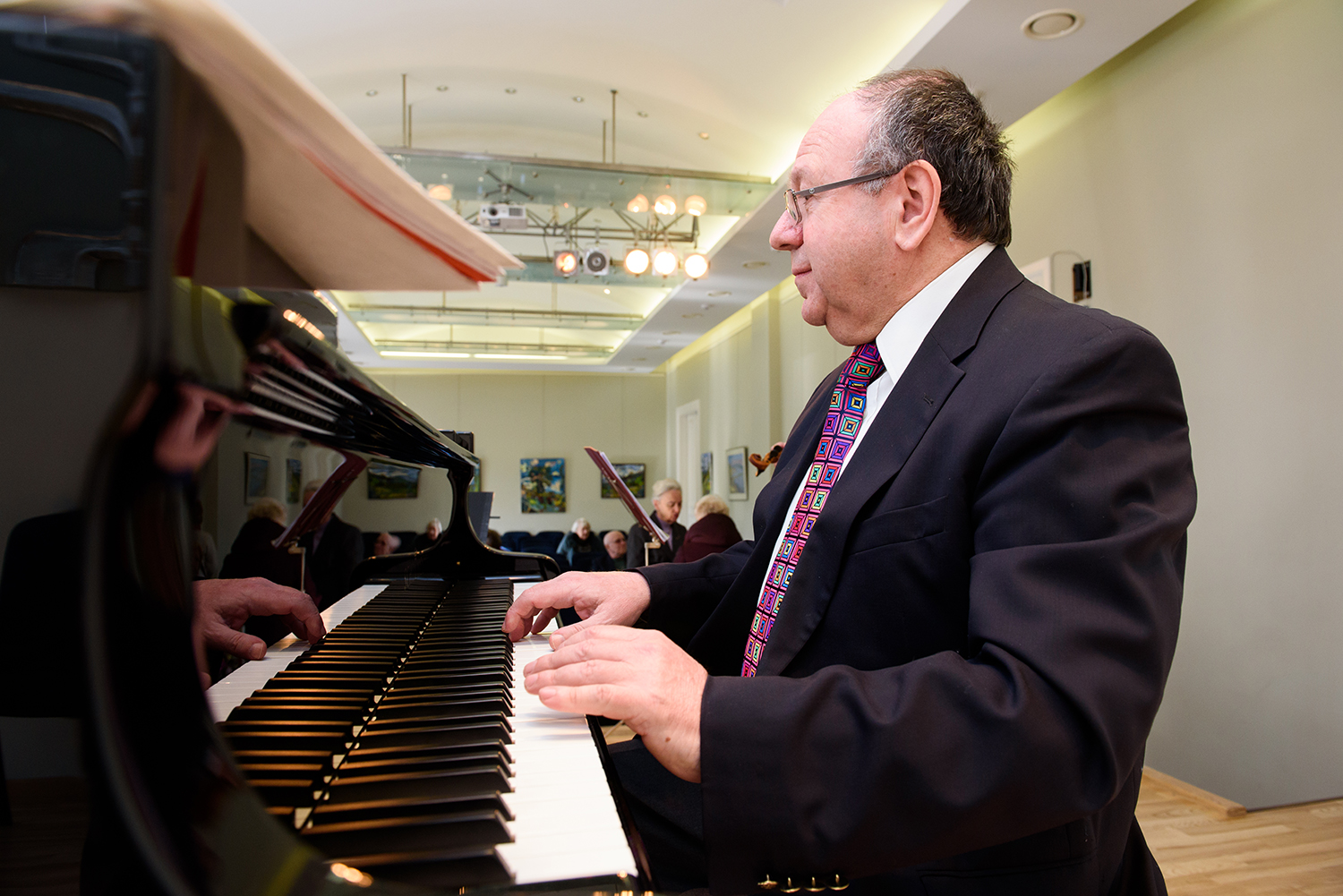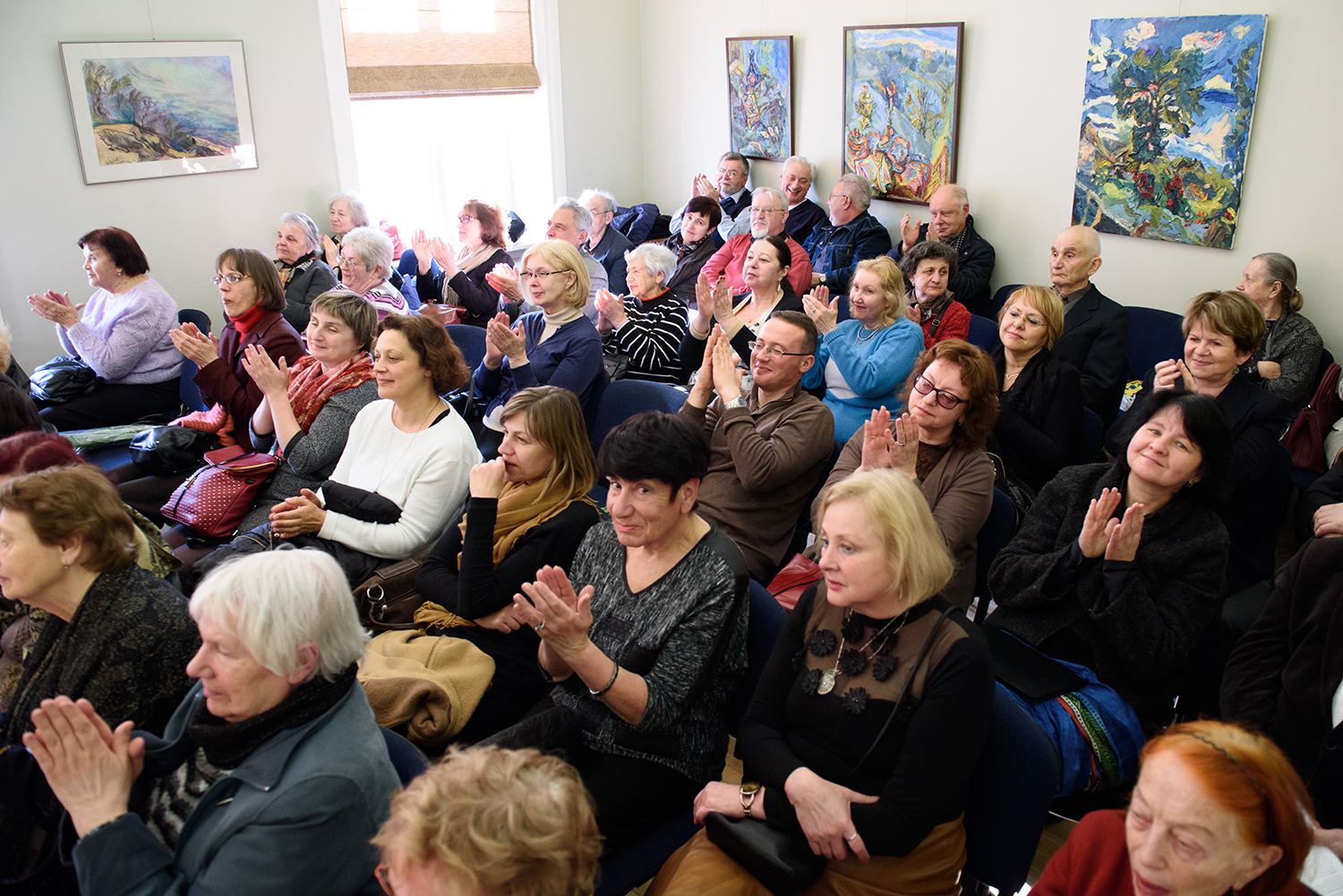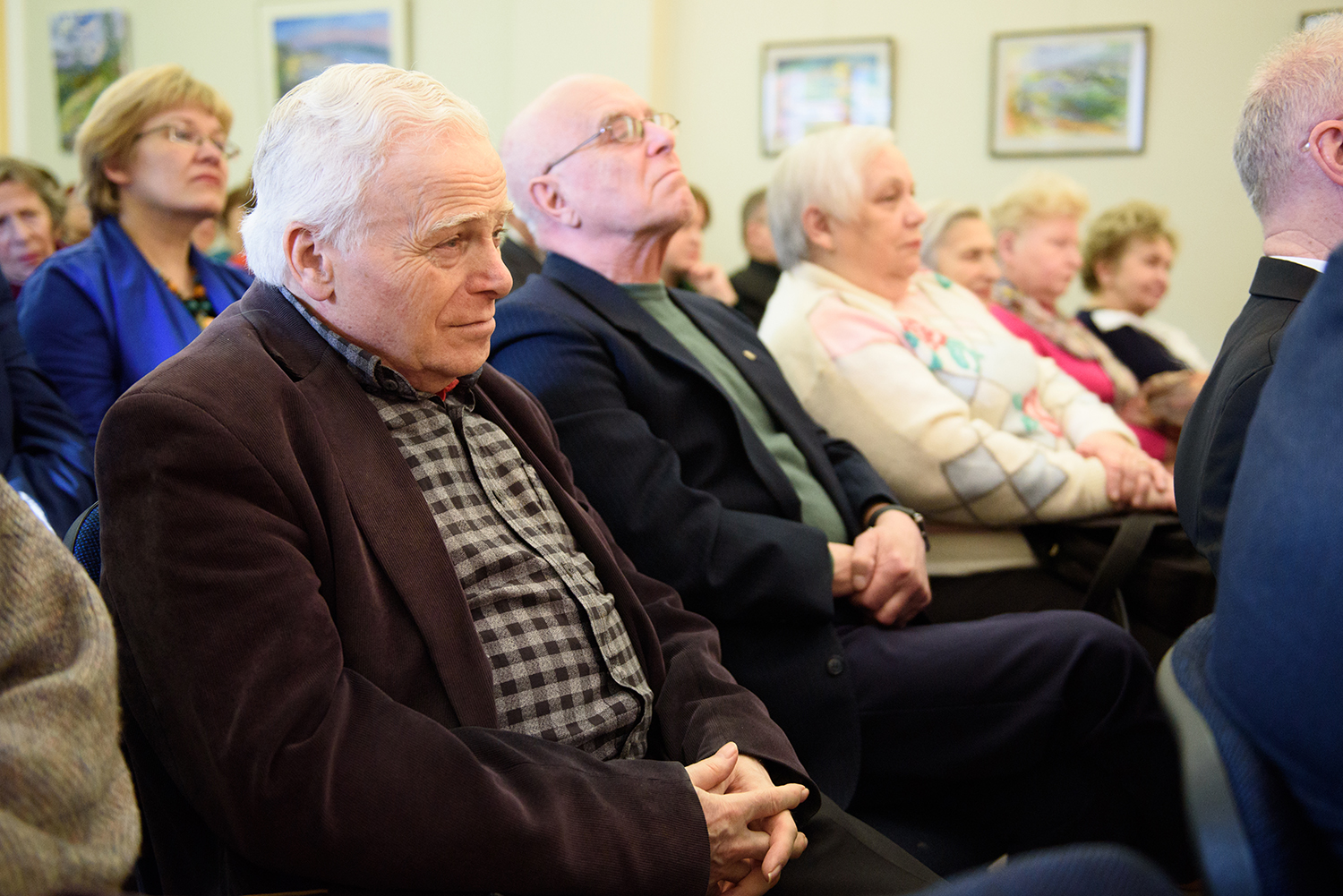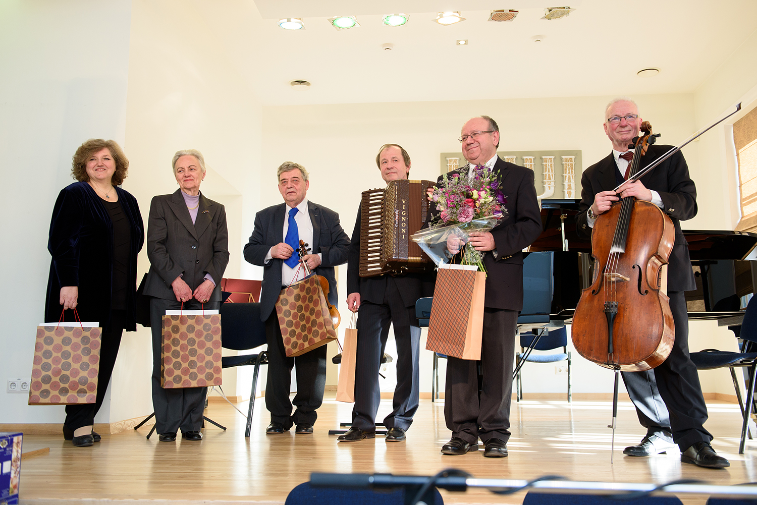 “I have been lucky in life because I play and write,” he answered one of her questions cheerfully and sincerely. After the conversations he sat down at the LJC’s new piano and played from the heart captivating and moving tunes with violinist Boris Traub, cellist Valentinas Kaplūnas and accordion player Gennady Savkov accompanying.