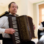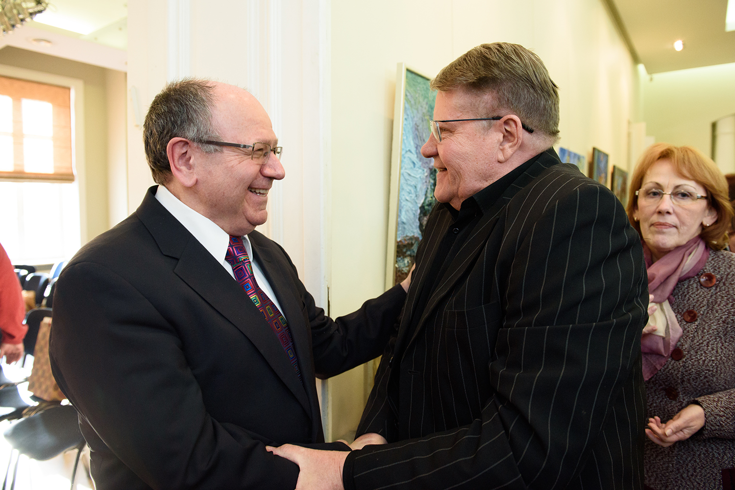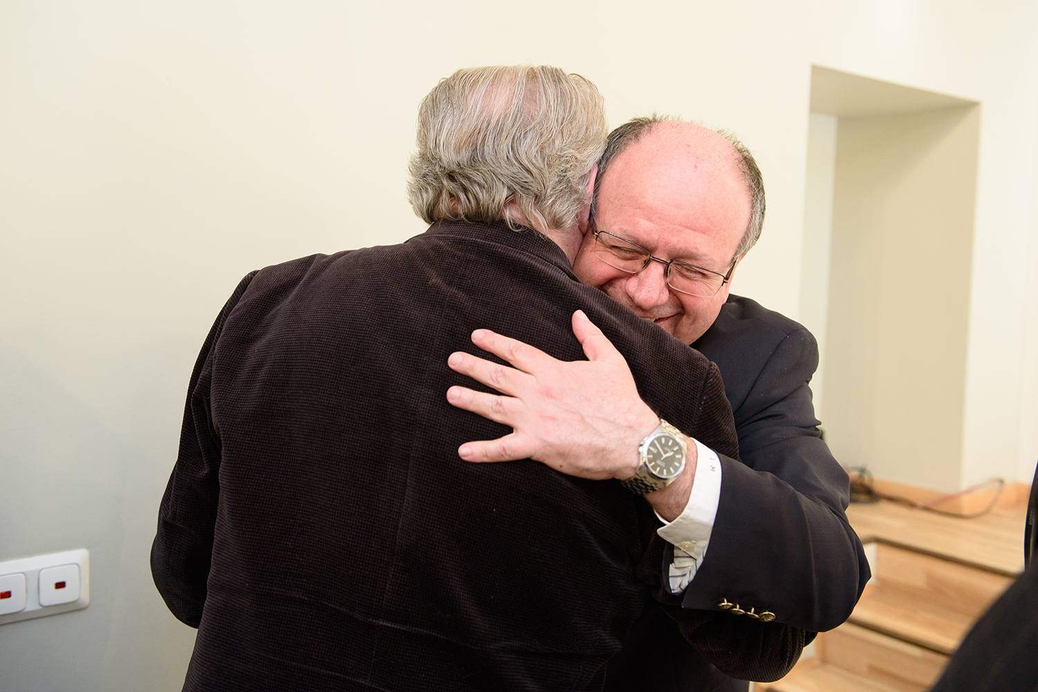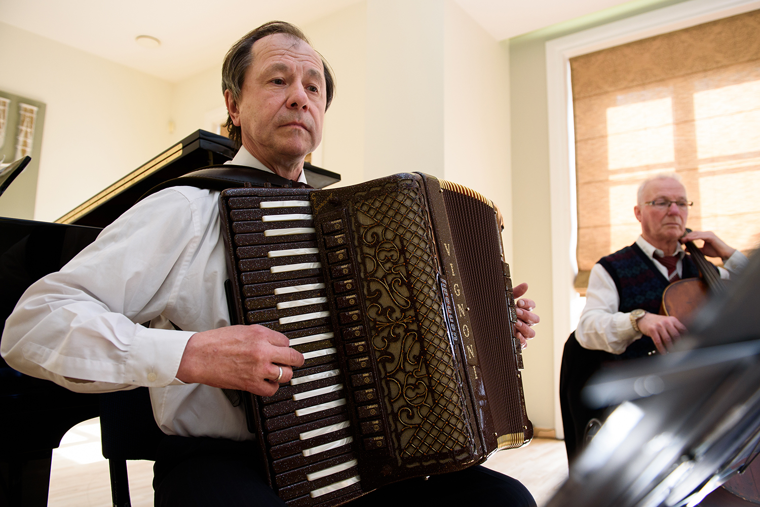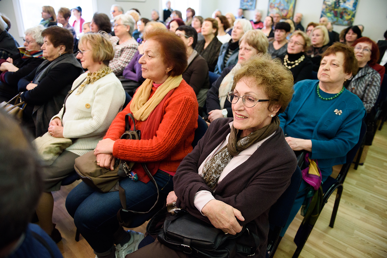 “I have been lucky in life because I play and write,” he answered one of her questions cheerfully and sincerely. After the conversations he sat down at the LJC’s new piano and played from the heart captivating and moving tunes with violinist Boris Traub, cellist Valentinas Kaplūnas and accordion player Gennady Savkov accompanying.