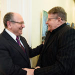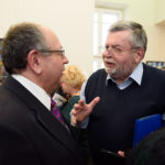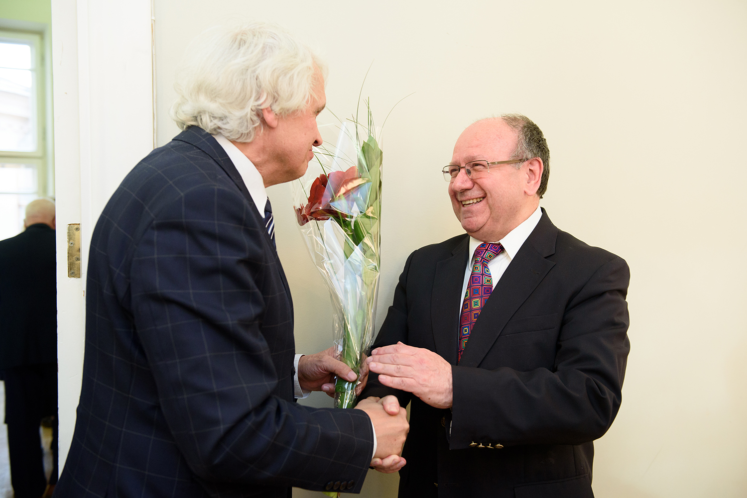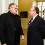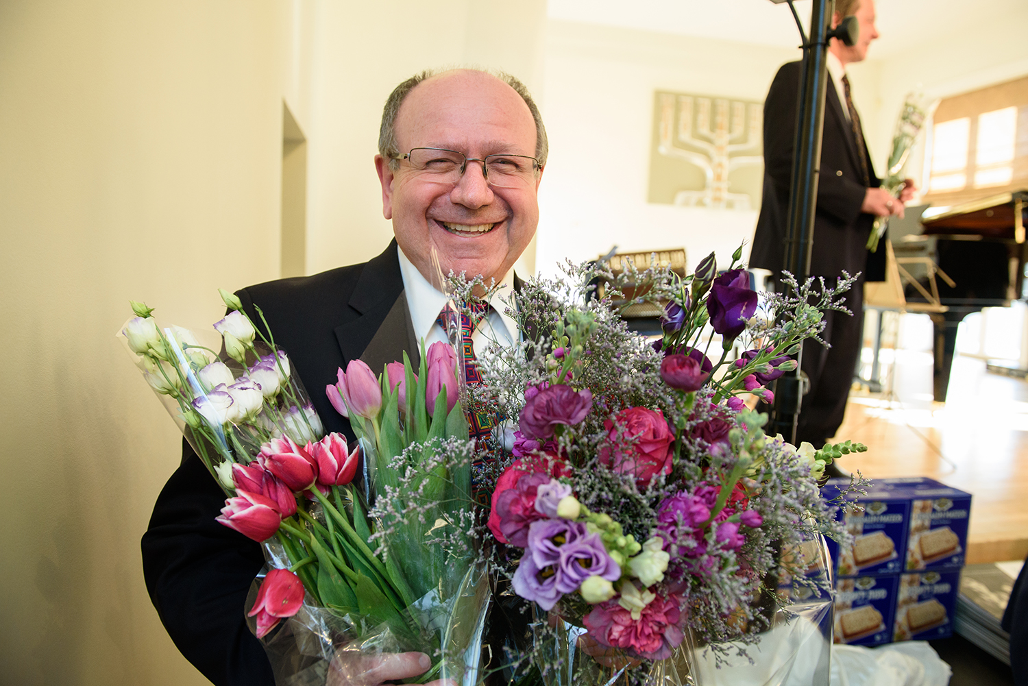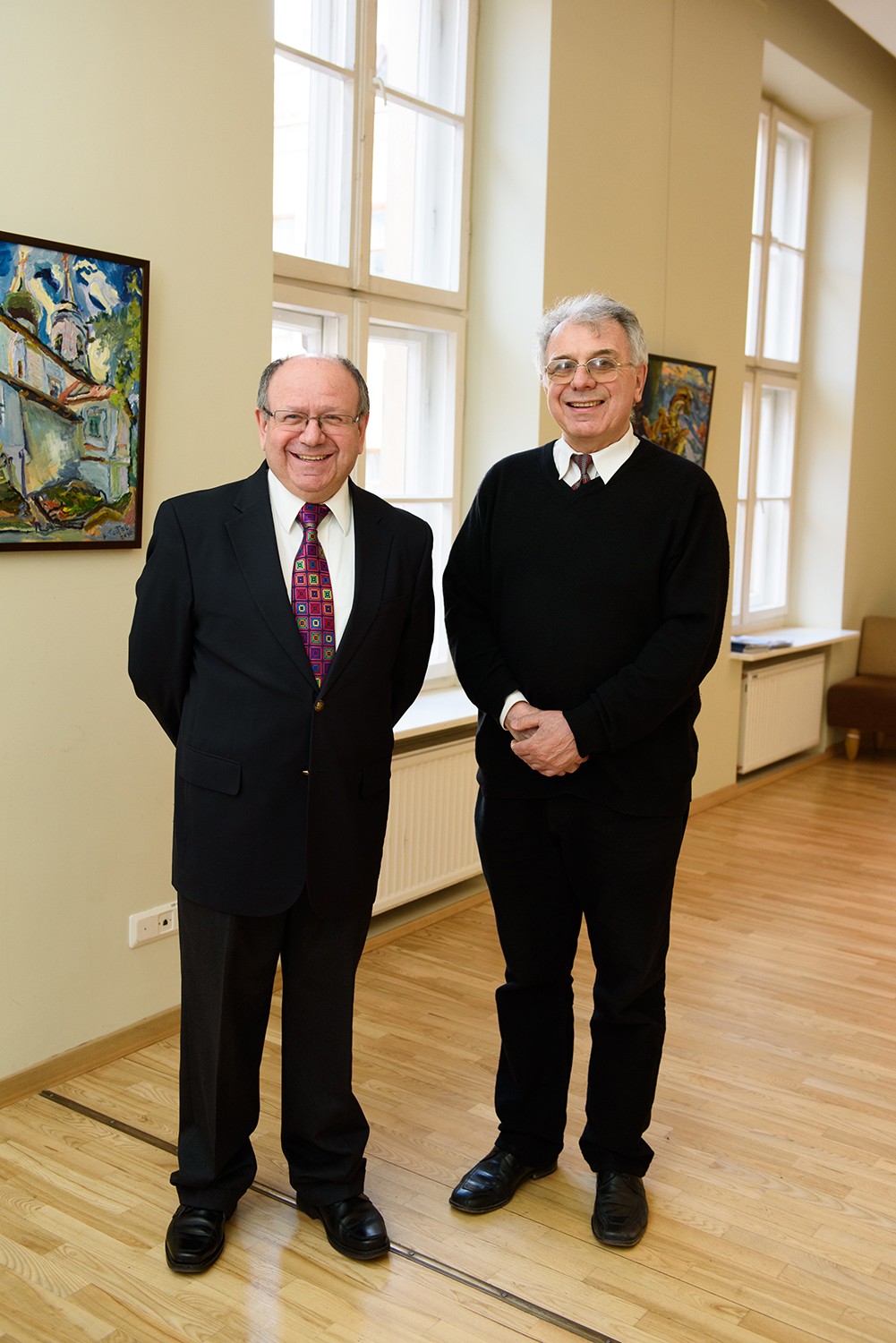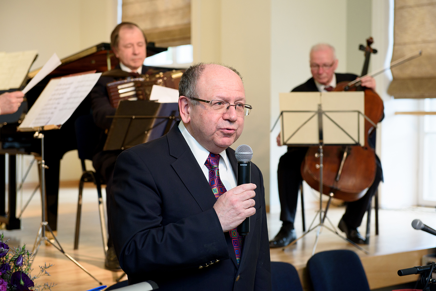 The evening began at the Jascha Heifetz hall at LJC headquarters in Vilnius with the airs of a tango, an overflow crowd and the birthday boy smiling on stage. Leonidas Melnikas is a piano player, organ player, musicologist, a tenured doctor, the head of his cathedral at the Lithuanian Academy of Music and Theater, chairman of the academy’s senate and professor. He’s also a member of the board of directors of the Lithuanian Jewish Community. He turned 60 Thursday.