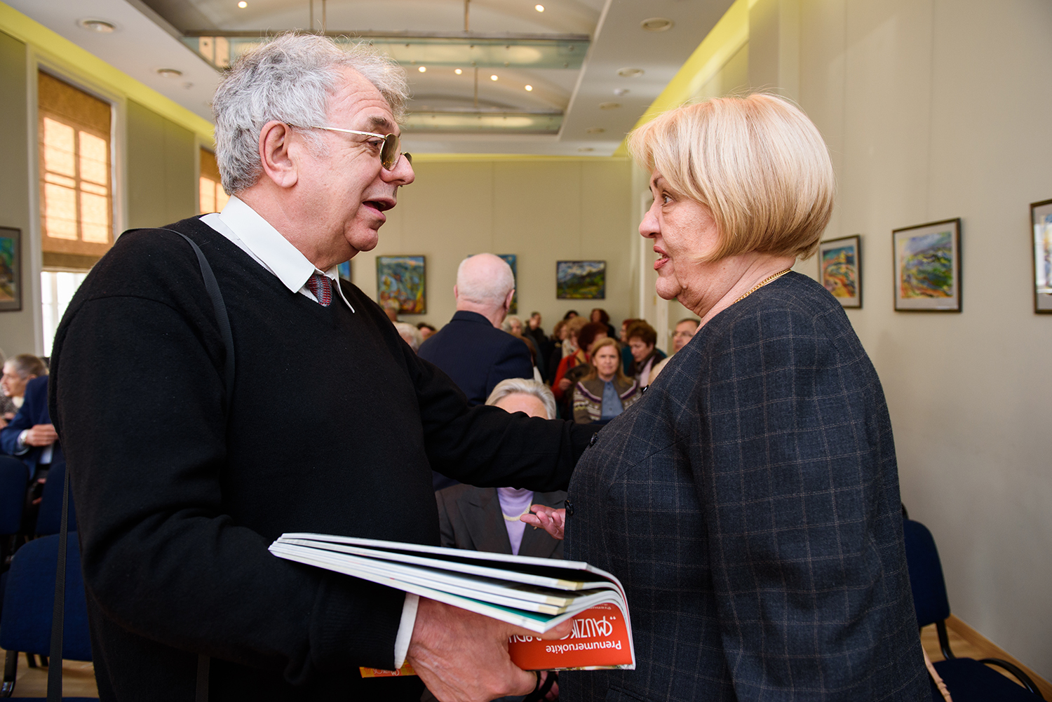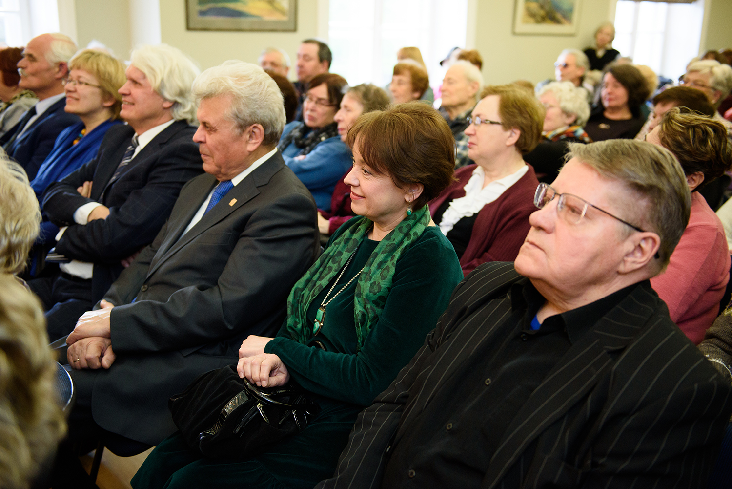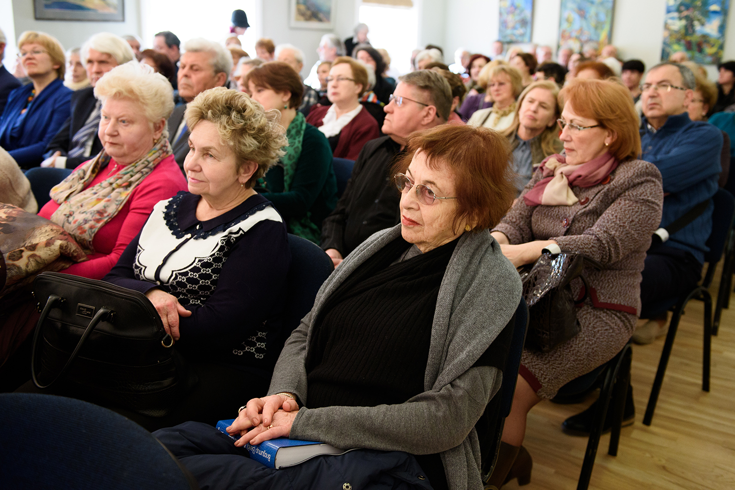 Professor Silvija Sondeckienė was part of the birthday party. She’s a famous cellist and music teacher and the wife of one of the country’s most renowned conductors, professor Saulius Sondeckis. Sondeckienė said Melnikas had sacrificed part of his life to the students and teachers at the Lithuanian Academy of Music and Theater as a teacher there and in writing about other important books. Over many years he wrote about celebrated maestro Saulius Sondeckis, conducting long interviews sitting together with him in the evening. Writing the book took several years because new facts had to be added continually after every interview, with each new fact opening up onto a wider horizon. New facts are challenging to an author, but Melnikas shared his hope with the audience at the birthday celebration, saying he intended to finish the long-awaited book within a year.